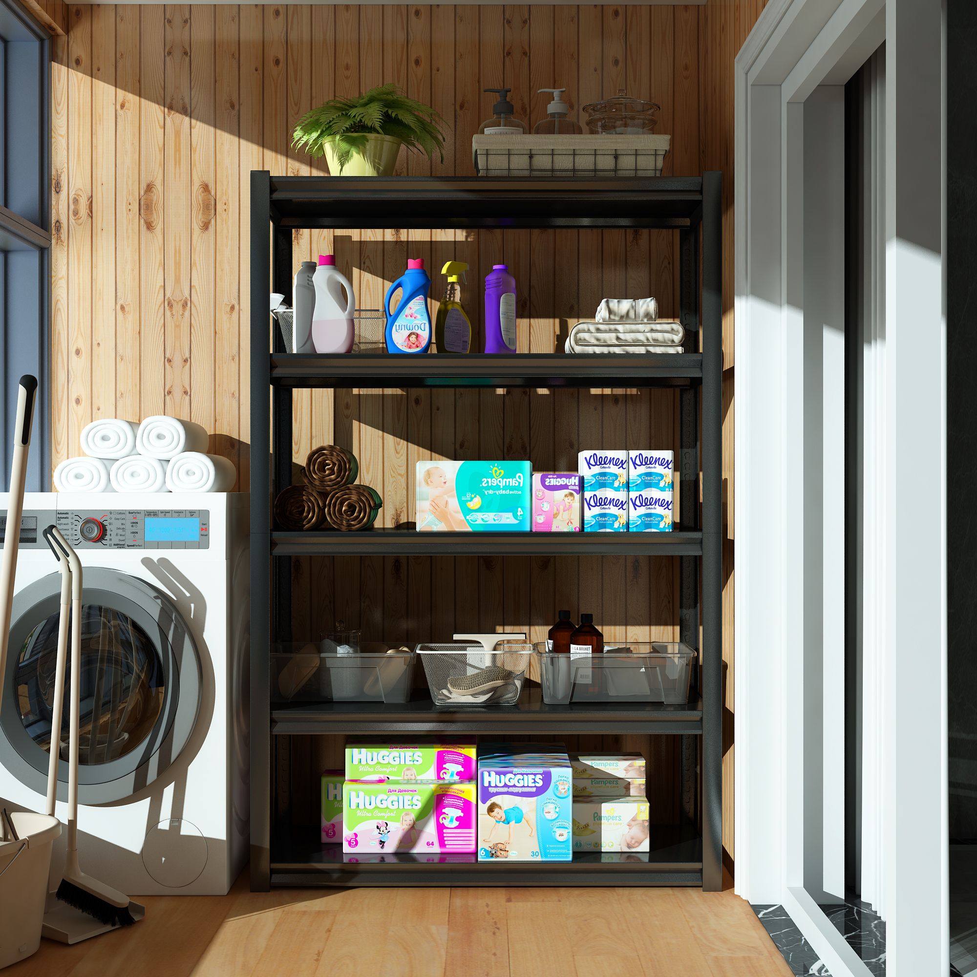 4.MULTIPURPOSE SHELVES:5-tier shelves for storage are useful when organizing your tools, food, books or other things, and are especially suitable for any place where space is limited and large storage space is needed, such as bathrooms, doorways, entrances, garages, kitchens, pantries, laundry rooms,