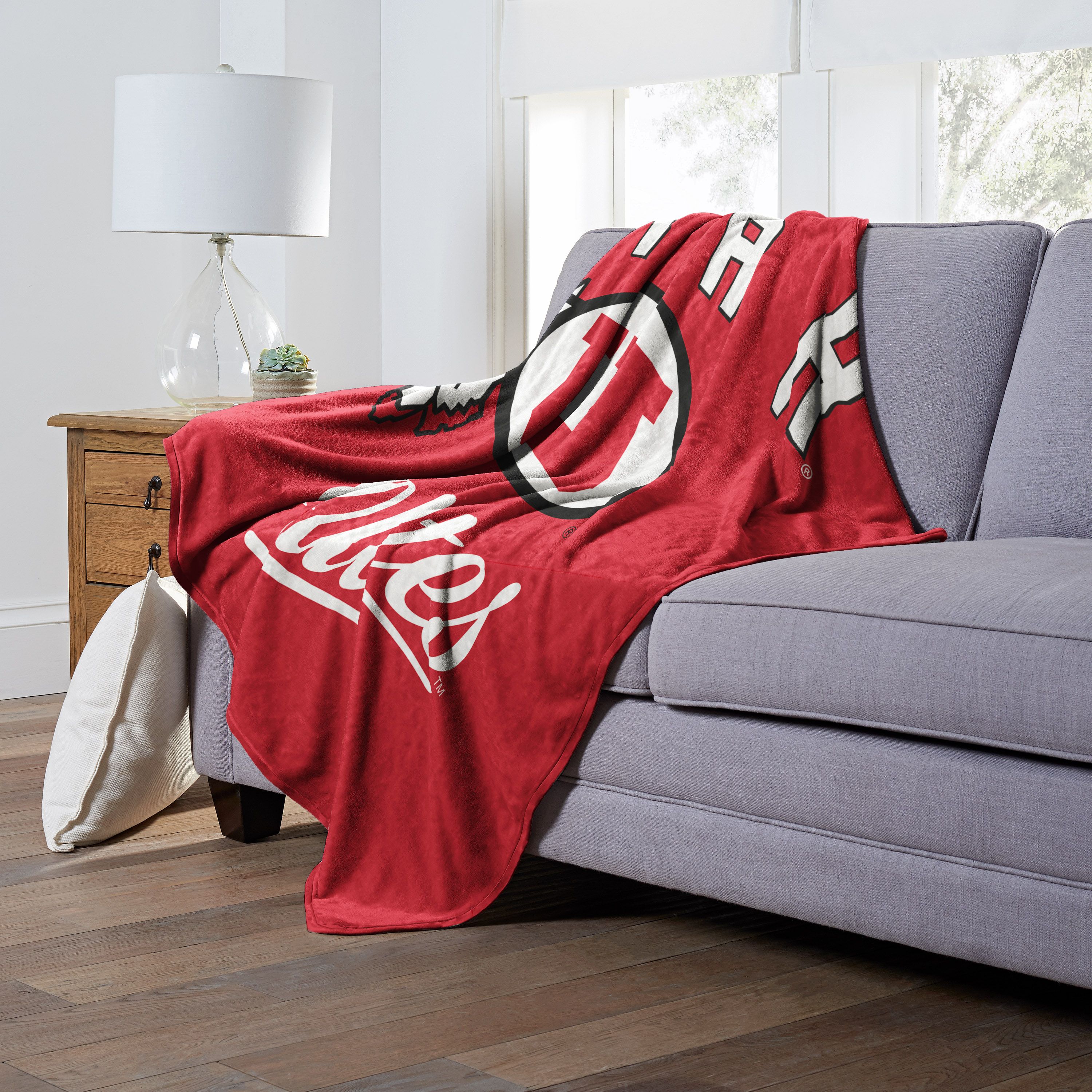 Proudly show off your alma mater or the school you love to root for with this Officially Licensed NCAA "Alumni" Silk Touch Throw Blanket by TheNorthwest. This cozy throw blanket is the perfect game day accessory. This 50"x 60" silky-soft throw blanket is perfect for keeping warm at the game, using on a picnic, or cuddling under on your couch. It boldly features a retro school logo in the center, surrounded by the team name, on a solid color background. This throw has a neutral color backside.