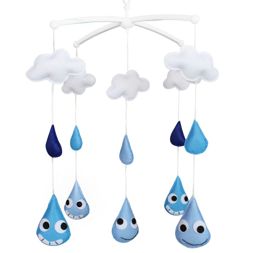 Baby Crib Bell Handmade Musical Mobile Baby Shower Gift Blue Raindrops Nursery Decor Baby Crib Bell Handmade Musical Mobile Baby Shower Gift Blue Raindrops Nursery Decor