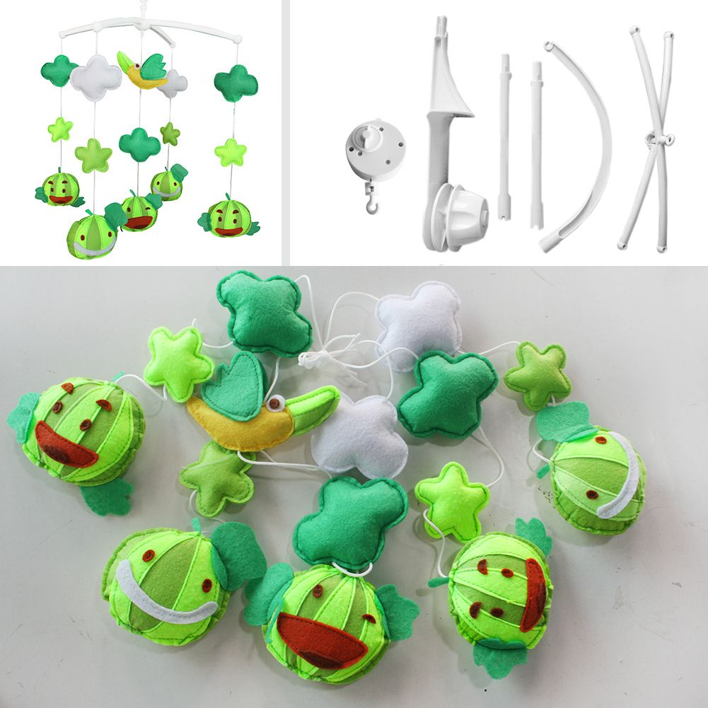 This handmade baby crib mobile plays light music to help your baby easily fall asleep. Easy operation and convenient to use; it will rotate while playing music. Each bed bell plays Only One soothing pure and light song. Keep baby calm and happy. It is an essential product for baby and nursery. Perfect for baby shower or mom-to-be gift for baby's nursery. Baby's nursery room decoration. The toys are made from nonwoven fabric.