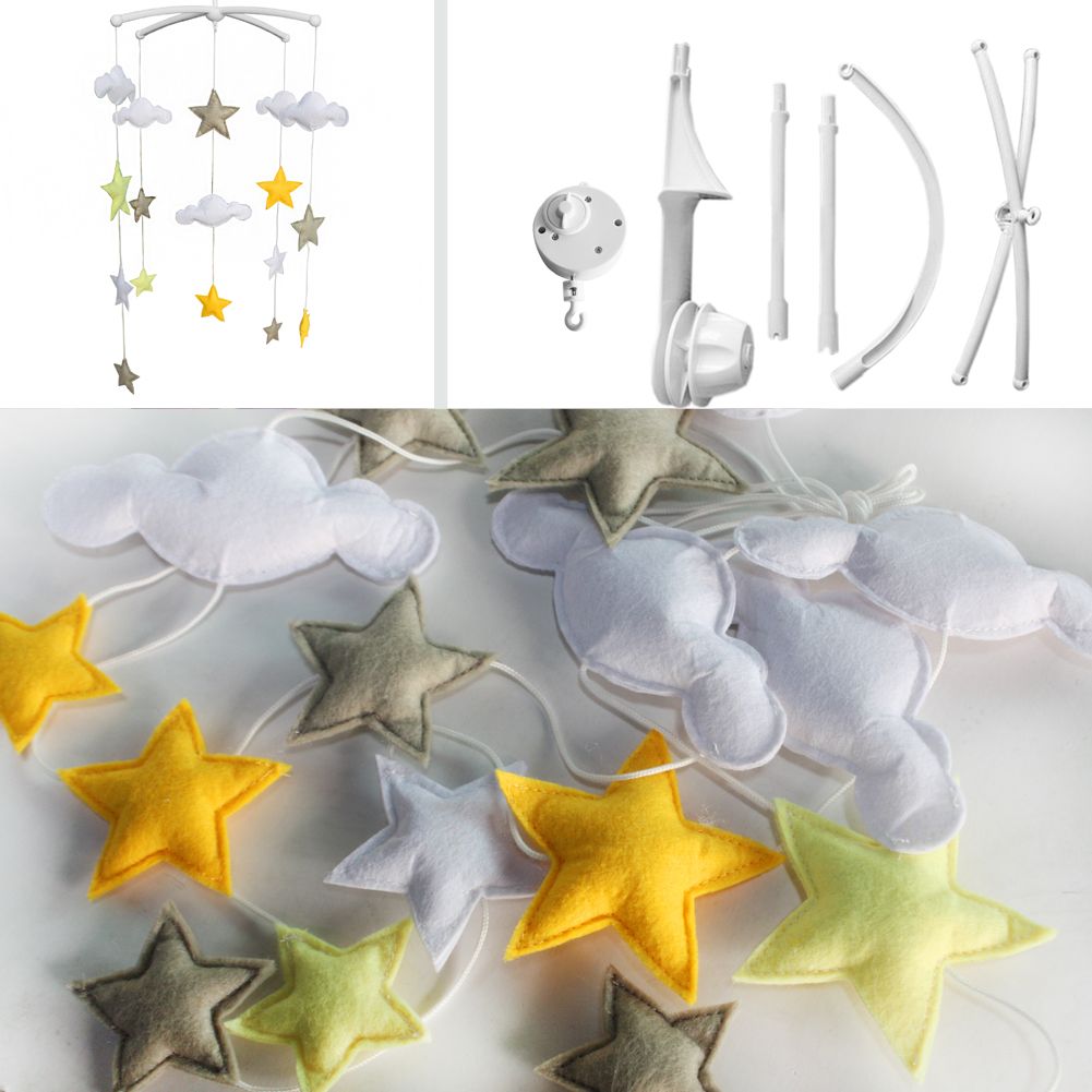 Handmade Baby Crib Mobile Yellow Brown Star Baby Musical Mobile Kids Room Nursery Decoration Handmade Baby Crib Mobile Yellow Brown Star Baby Musical Mobile Kids Room Nursery Decoration