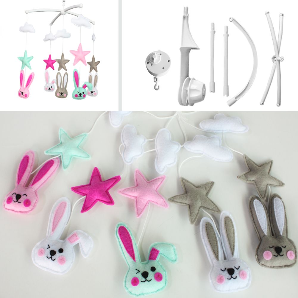 Home > Baby Crib Mobile Animal Musical Crib Mobile Nursery Room Hanging Decor Toy Pink Blue Grey White Rabbit