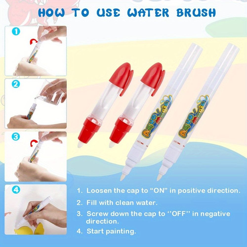 Magic Drawing Mat Reusable - Fill the magic pen with clean water and draw on the magic drawing mat. The doodle needs 3-10 minutes to disappear automatically,kids can draw on doodle board mat again and again.