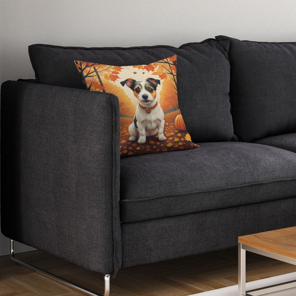 Home > Jack Russell Terrier Fall Throw Pillow Machine Washable, Indoor Outdoor Decorative Pillow for Couch, Bed or Patio, 14Hx14W