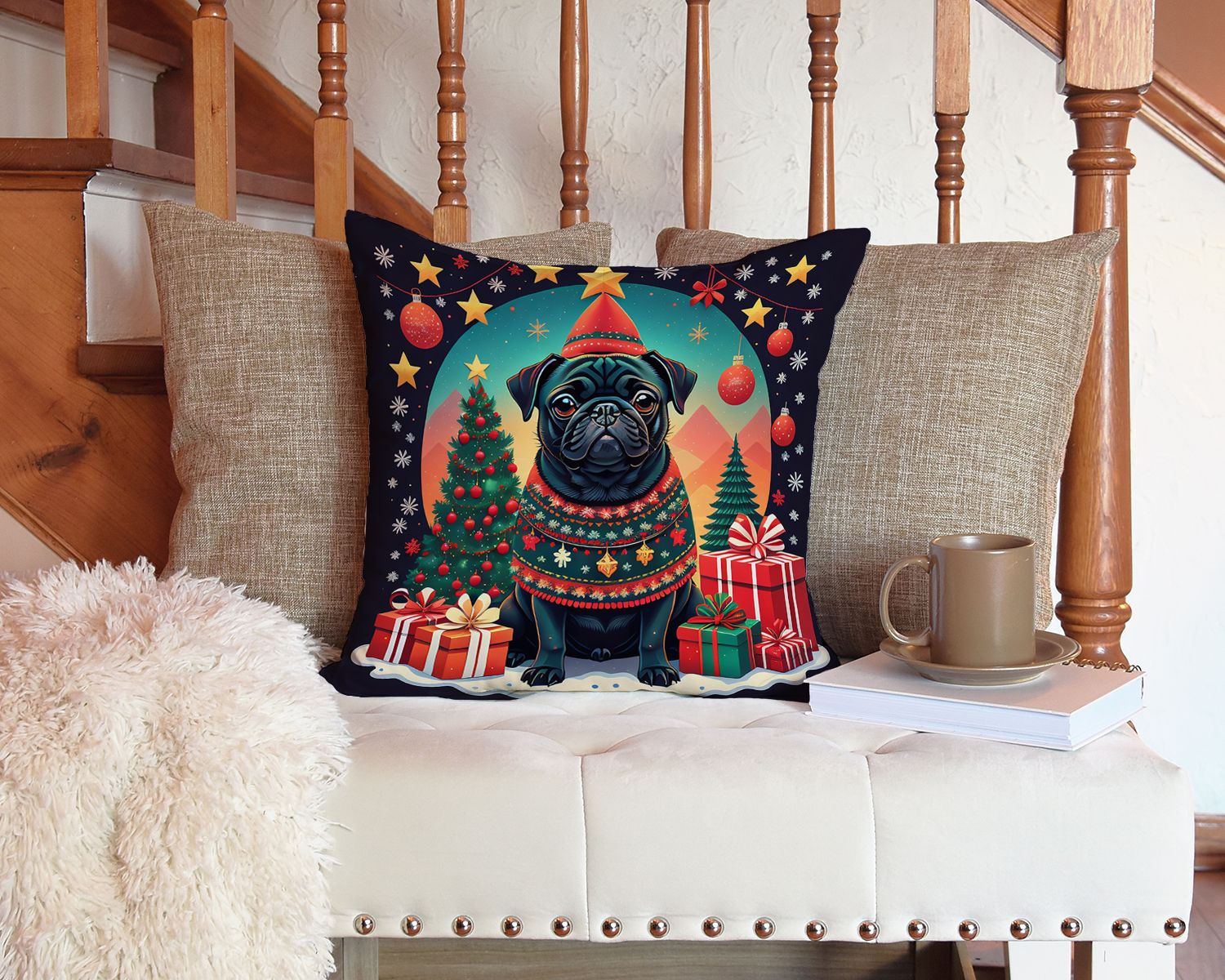 Black Pug Christmas Throw Pillow Machine Washable, Indoor Outdoor Decorative Pillow for Couch, Bed or Patio, 14Hx14W