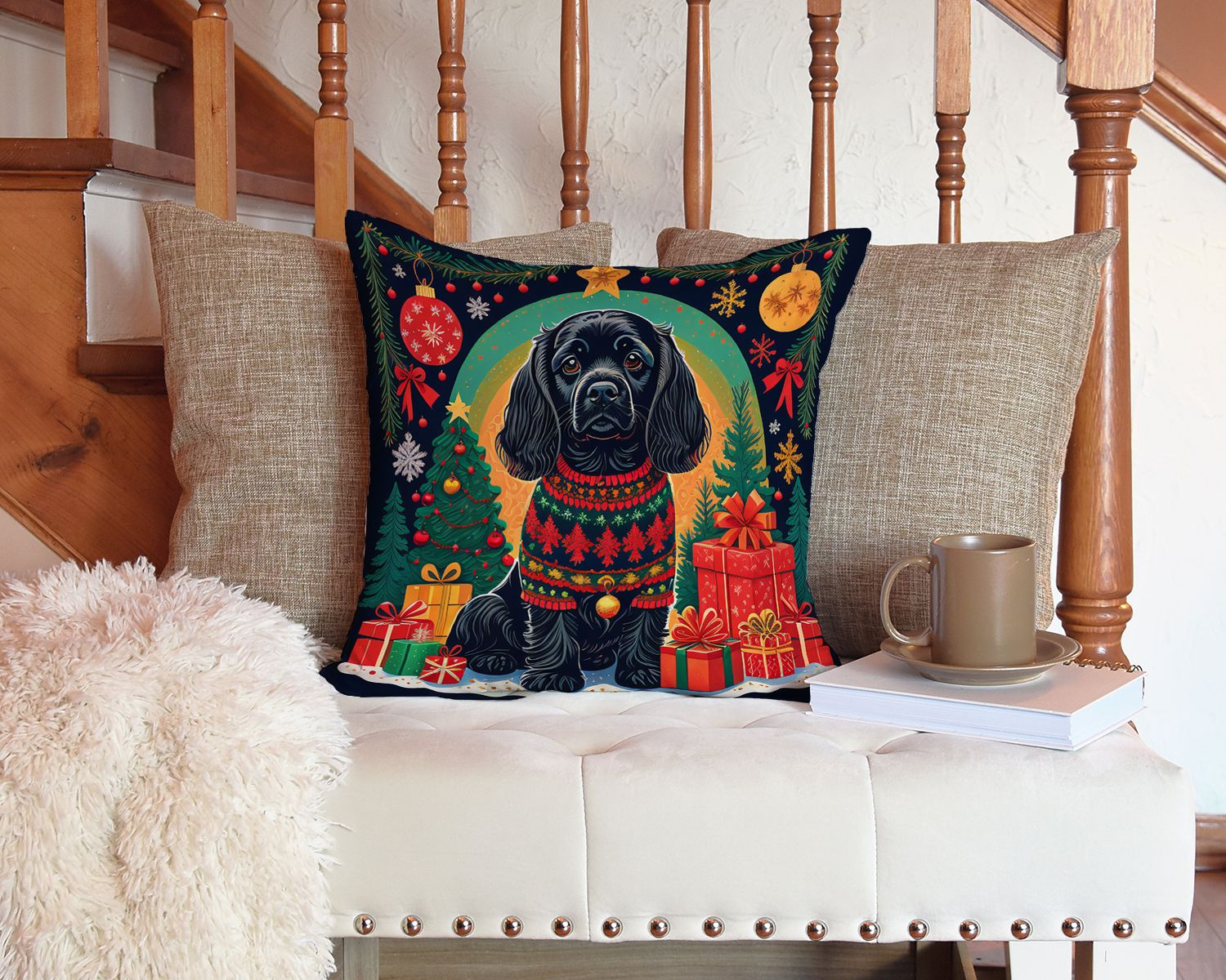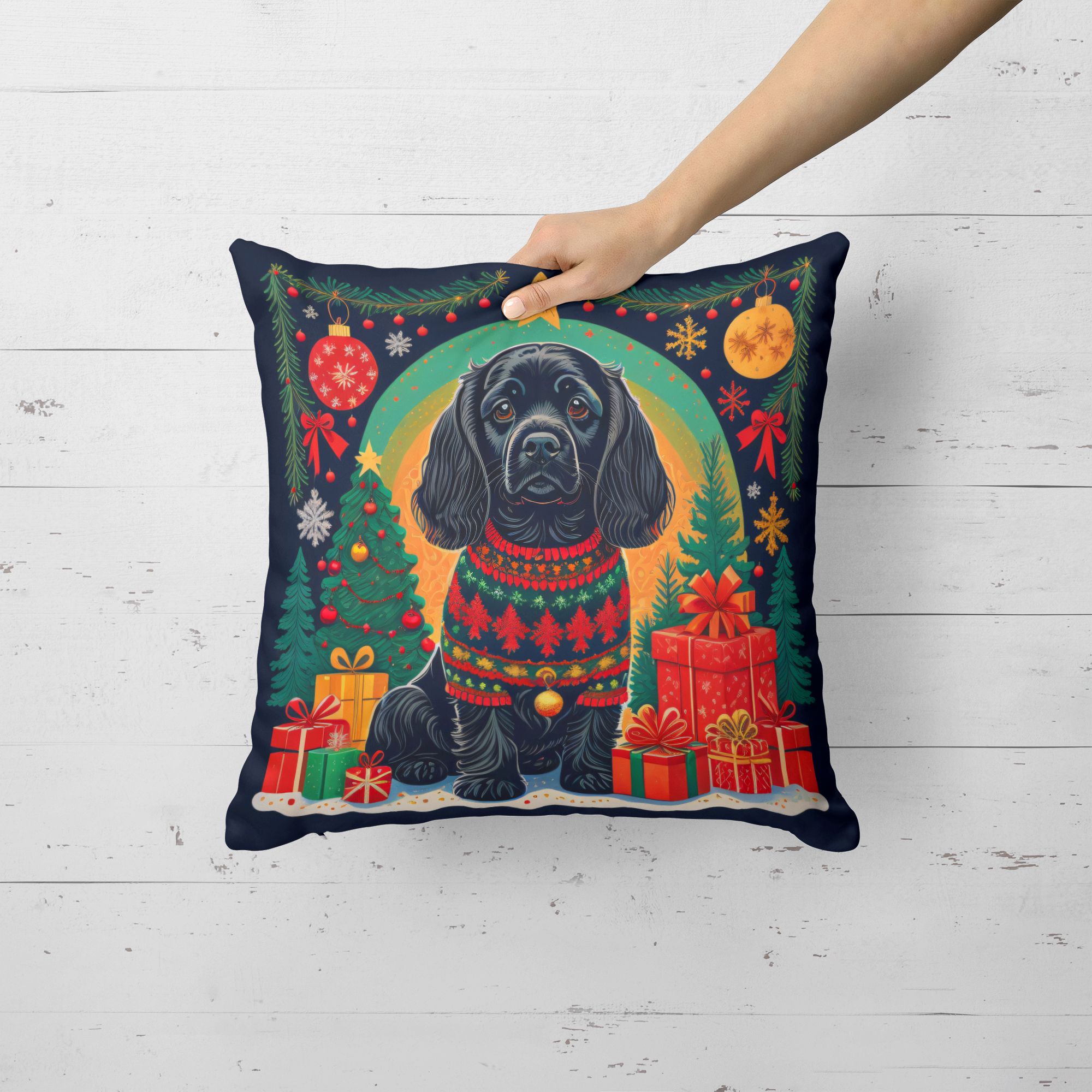 Black Cocker Spaniel Christmas Throw Pillow Machine Washable, Indoor Outdoor Decorative Pillow for Couch, Bed or Patio, 14Hx14W