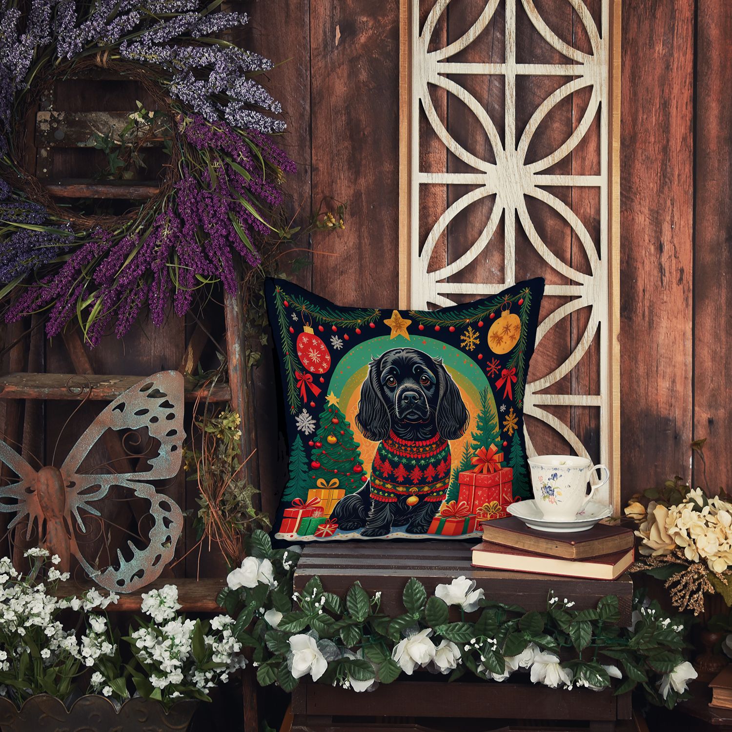 Home > Black Cocker Spaniel Christmas Throw Pillow Machine Washable, Indoor Outdoor Decorative Pillow for Couch, Bed or Patio, 14Hx14W