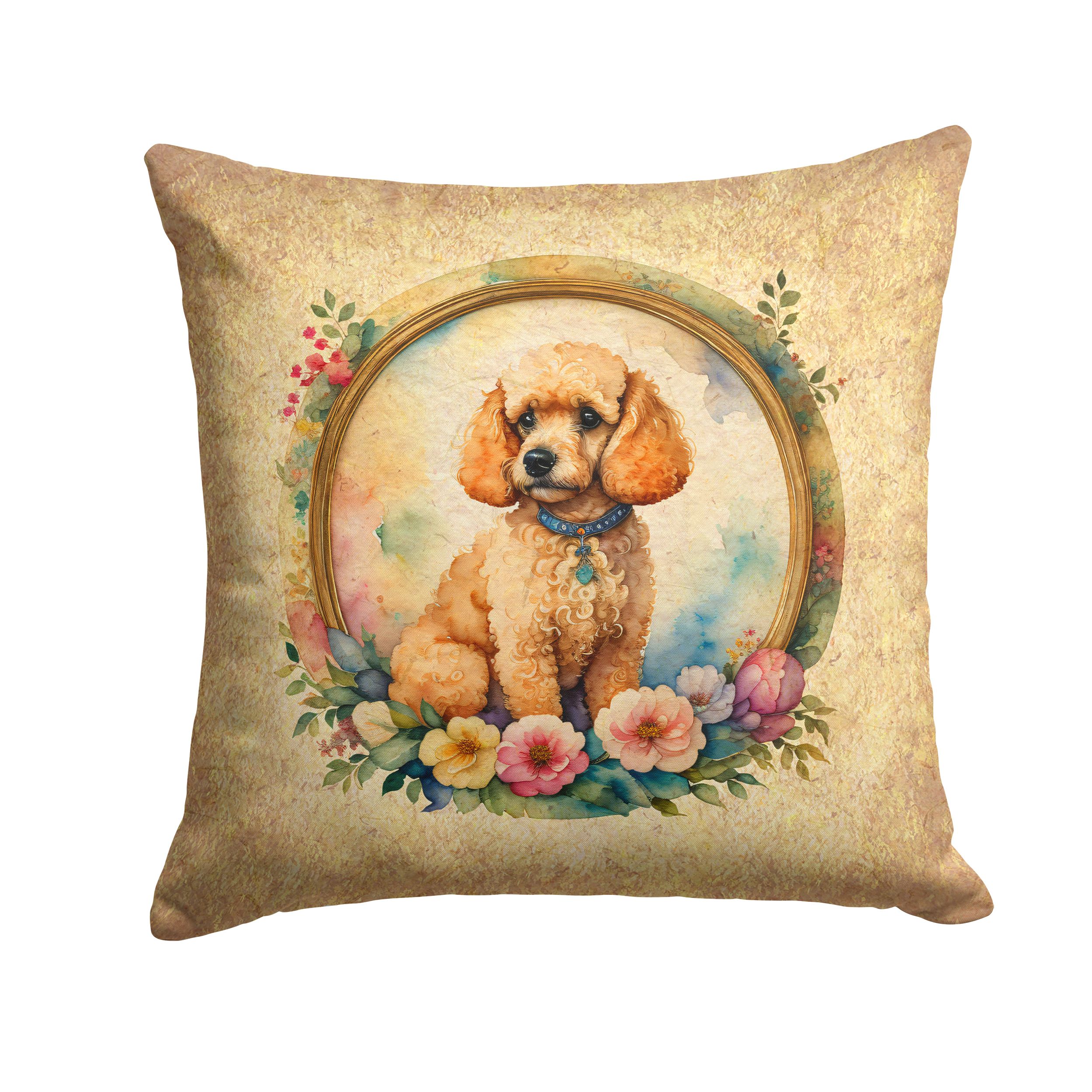 Home > Poodle and Flowers Throw Pillow Machine Washable, Indoor Outdoor Decorative Pillow for Couch, Bed or Patio, 14Hx14W
