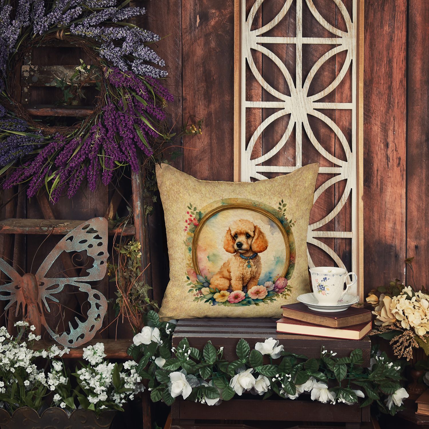 Poodle and Flowers Throw Pillow Machine Washable, Indoor Outdoor Decorative Pillow for Couch, Bed or Patio, 14Hx14W