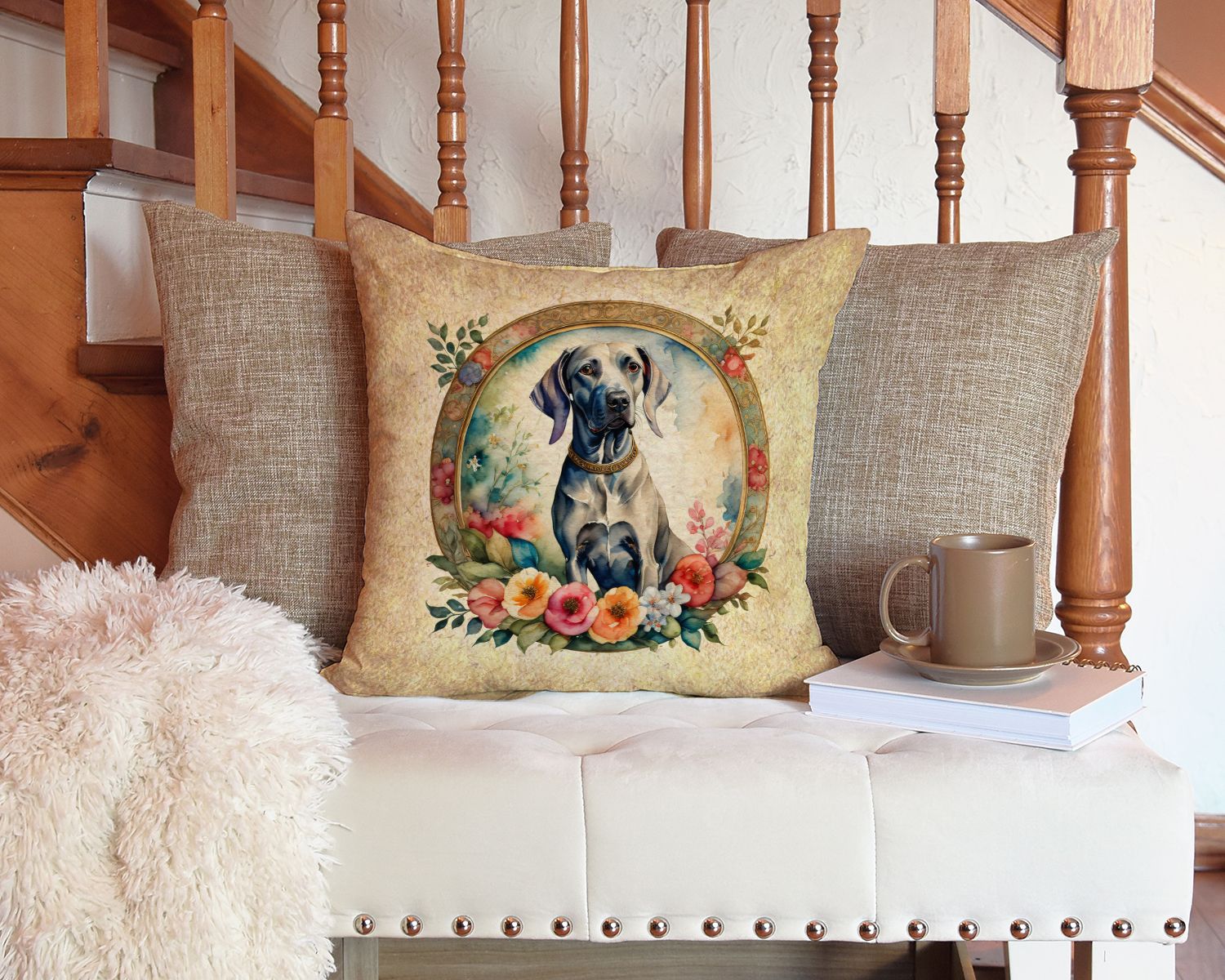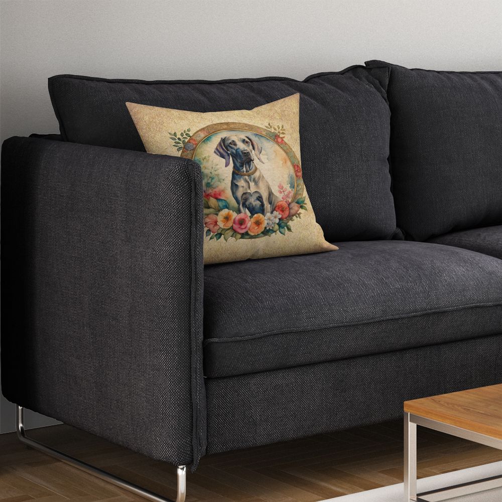 Weimaraner and Flowers Throw Pillow Machine Washable, Indoor Outdoor Decorative Pillow for Couch, Bed or Patio, 14Hx14W