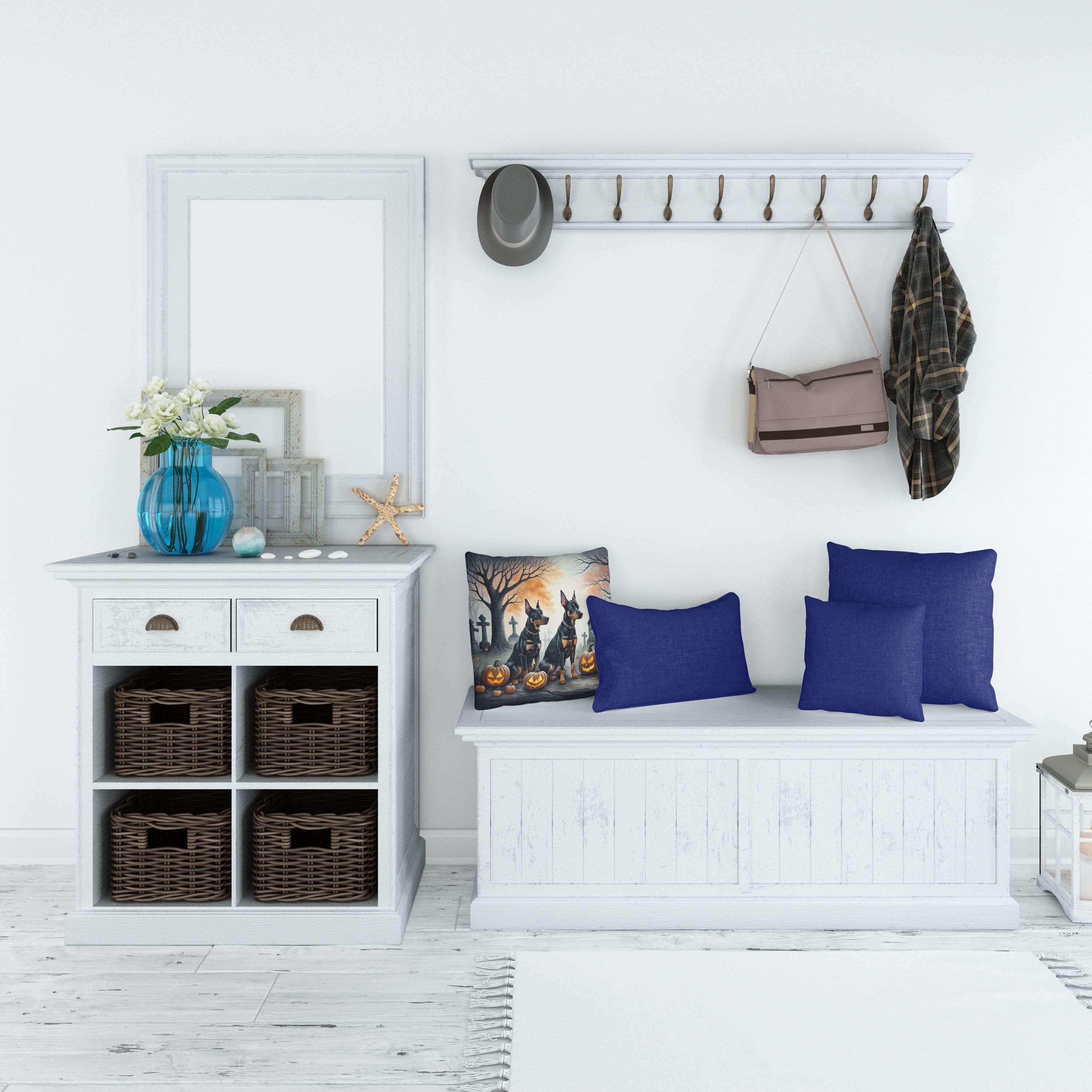Home > Doberman Pinscher Spooky Halloween Throw Pillow Machine Washable, Indoor Outdoor Decorative Pillow for Couch, Bed or Patio, 18Hx18W