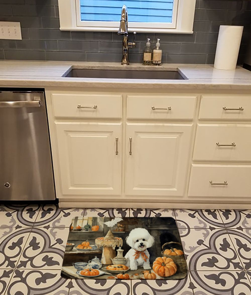 Bichon Frise Fall Kitchen Pumpkins Memory Foam Kitchen Mat Machine Washable Anti-Fatigue Mat Cushion Comfort Bath Mat or Kitchen Rug