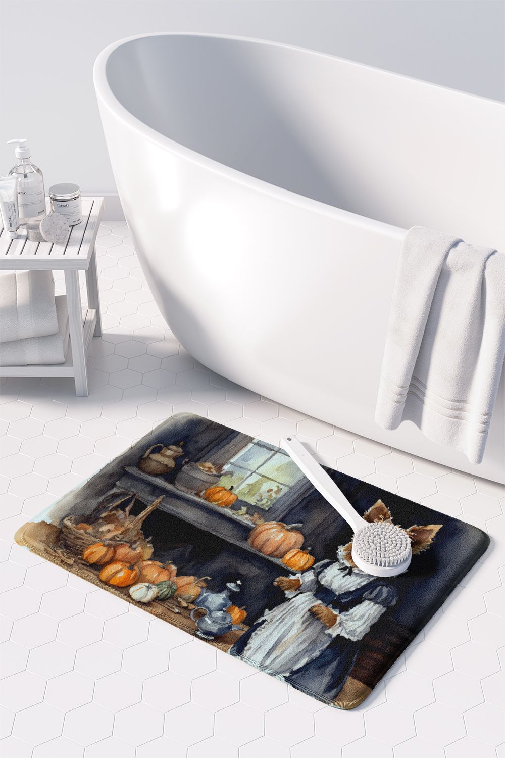 Australian Terrier Fall Kitchen Pumpkins Memory Foam Kitchen Mat Machine Washable Anti-Fatigue Mat Cushion Comfort Bath Mat or Kitchen Rug