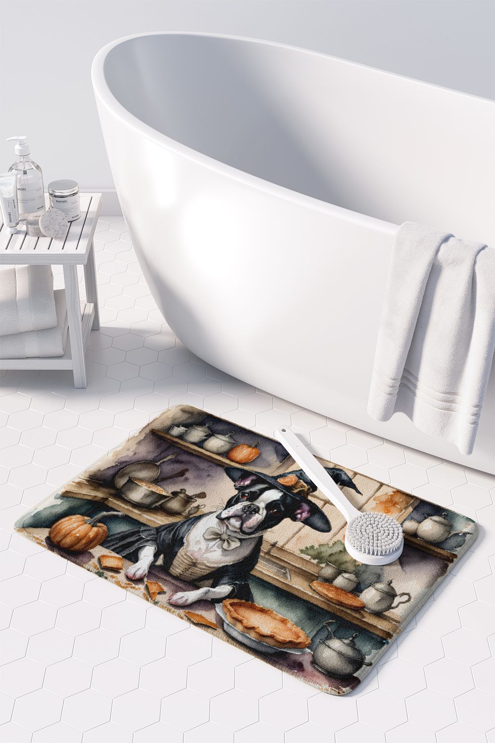 Memory Foam Kitchen Mat featuring breed specific Boston Terrier artwork. Celebrate Halloween with this Halloween Floor Mat. Transform your floor into a work of art with Caroline's Treasures' Memory Foam Mat. This mat offers not only a stunning visual appeal but also a luxurious, plush feel that's incredibly comfortable to the touch. It's a versatile, machine-washable mat designed for both bath and kitchen use, ensuring you experience the best in comfort and convenience. Care Instructions: Maintaining this memory foam mat is a breeze. Simply follow the care instructions on the product tag. It's recommended to wash in cold water and dry on a low-temperature setting in the dryer. This ensures the mat retains its quality and longevity, allowing you to enjoy its beauty and comfort for a long time. Caroline's Treasures' Memory Foam Mat Machine Washable is the perfect blend of artistry, comfort, and practicality, making it a standout addition to any space. Upgrade your home decor with this versatile and stylish mat today.