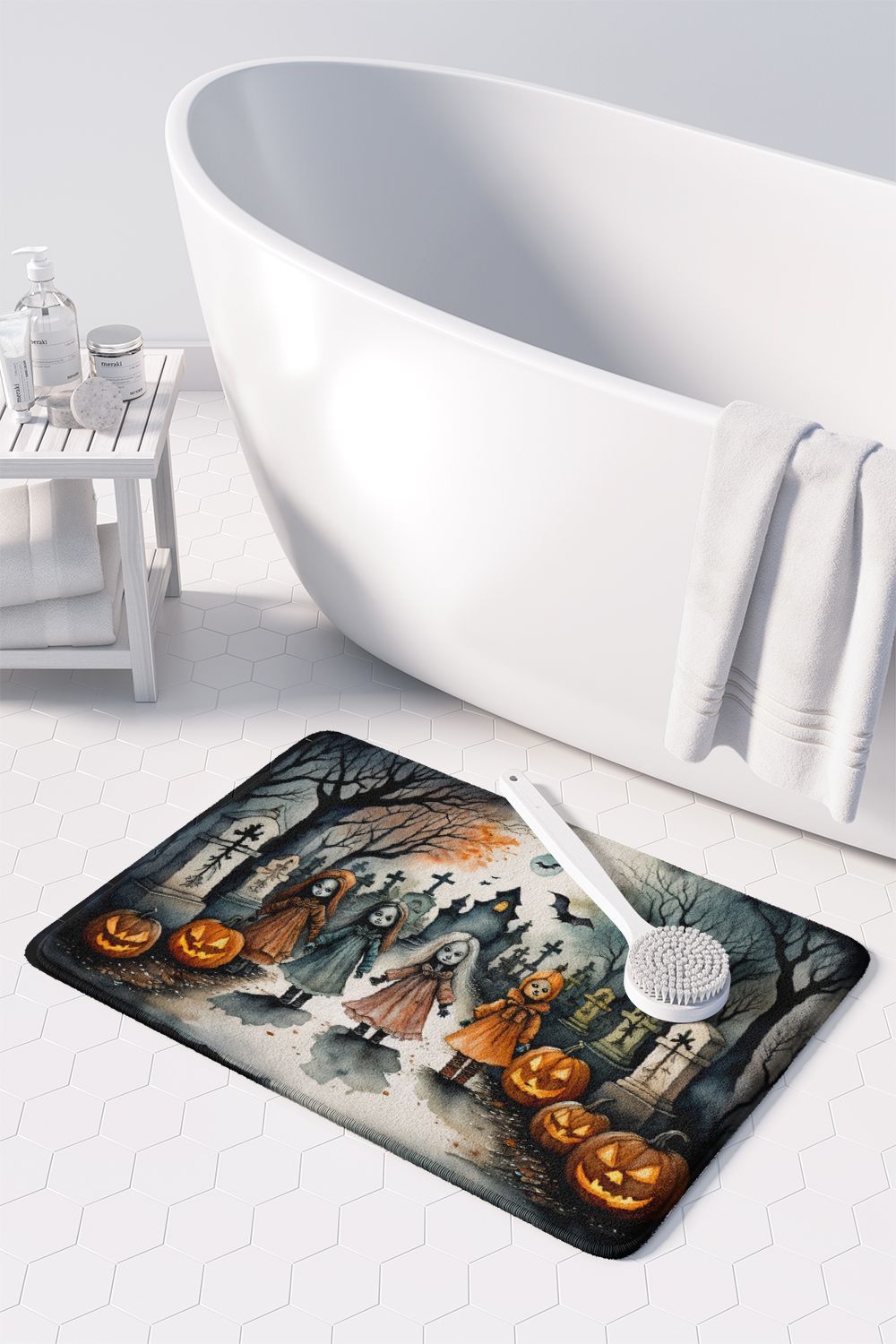 Celebrate Halloween with this Halloween Floor Mat. Transform your floor into a work of art with Caroline's Treasures' Memory Foam Mat. This mat offers not only a stunning visual appeal but also a luxurious, plush feel that's incredibly comfortable to the touch. It's a versatile, machine-washable mat designed for both bath and kitchen use, ensuring you experience the best in comfort and convenience. Care Instructions: Maintaining this memory foam mat is a breeze. Simply follow the care instructions on the product tag. It's recommended to wash in cold water and dry on a low-temperature setting in the dryer. This ensures the mat retains its quality and longevity, allowing you to enjoy its beauty and comfort for a long time. Caroline's Treasures' Memory Foam Mat Machine Washable is the perfect blend of artistry, comfort, and practicality, making it a standout addition to any space. Upgrade your home decor with this versatile and stylish mat today.