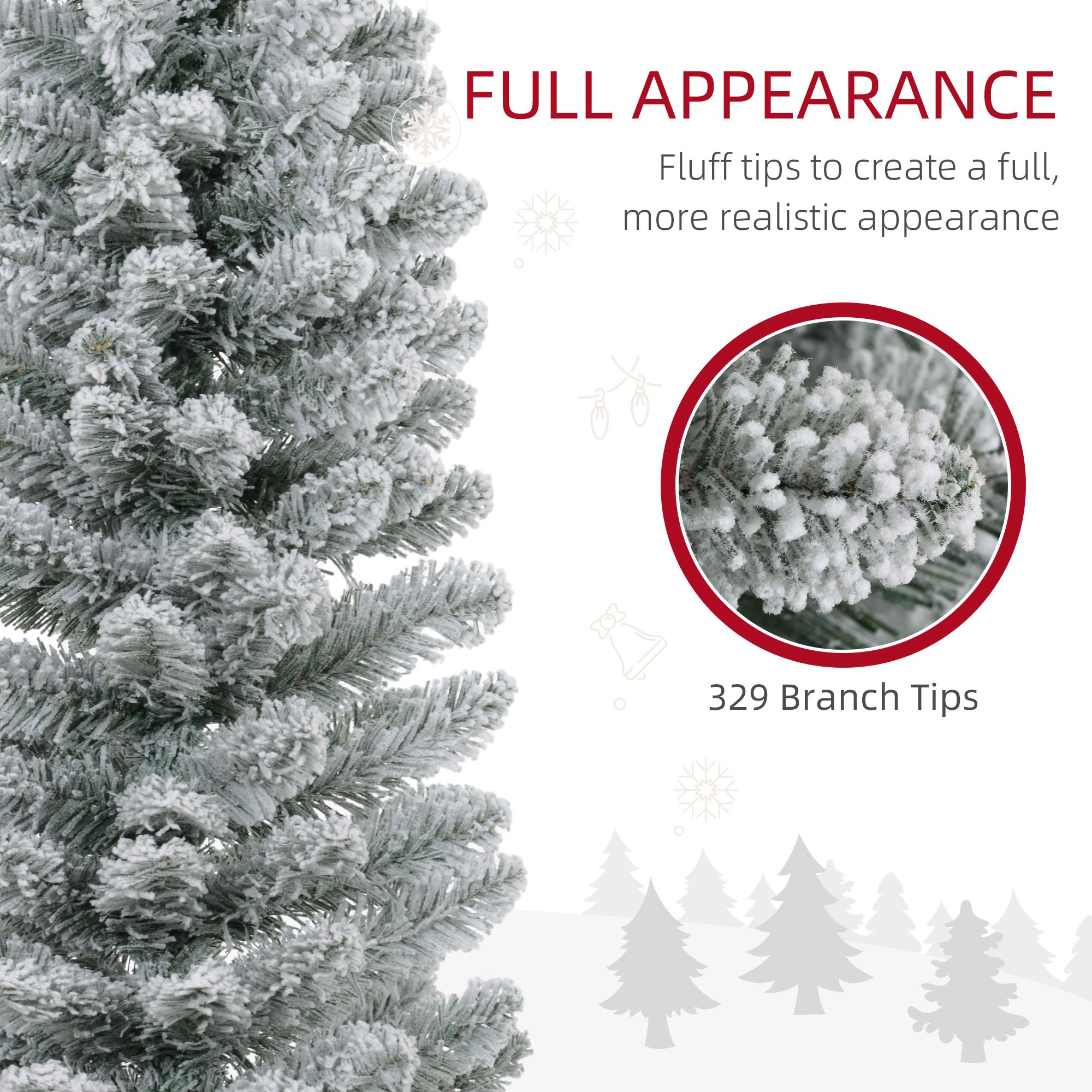 6ft Artificial Pencil Christmas Tree with 329 Snow Flocked Tips, Metal Base, Realistic Xmas Tree