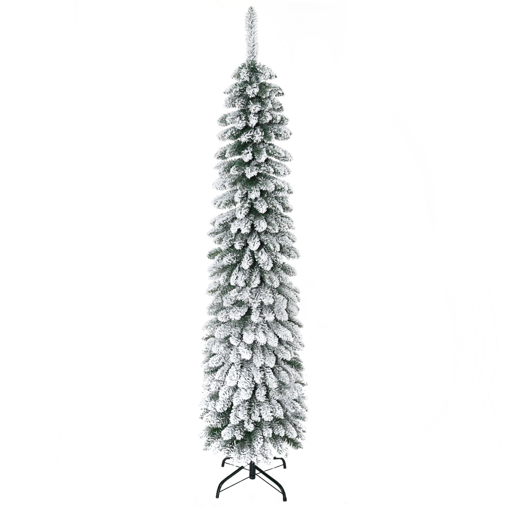 Home > 6' Tall Unlit Snow Flocked Artificial Christmas Tree, Slim Pencil Xmas Tree with Realistic Branches and 395 Tips, Green