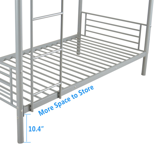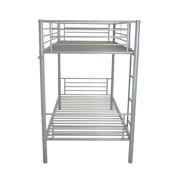 This simple and safe bed is not only designed for children. 250 pounds per berth can fully meet the needs of adults. This bedstead has a strong iron tube frame, which is divided into two layers of twin size. The double-layer design saves space effectively. The fence around the upper berth provides a safety guarantee. Ladder can be selected on the left or right side according to your own needs. Memory foam, latex or spring mattress can be placed directly on the bedstead, no need to use box spring.Wooden slate can give enough support to the mattress, prevent the mattress from drooping, increase the life of the mattress. The plastic cover of the leg can effectively protect the floor and reduce noise. The space under the bed can be used as storage space, effectively improving the utilization ratio of space. The Bunk Bed is packed in a narrow carton and can easily pass through the staircase / aisle / door.