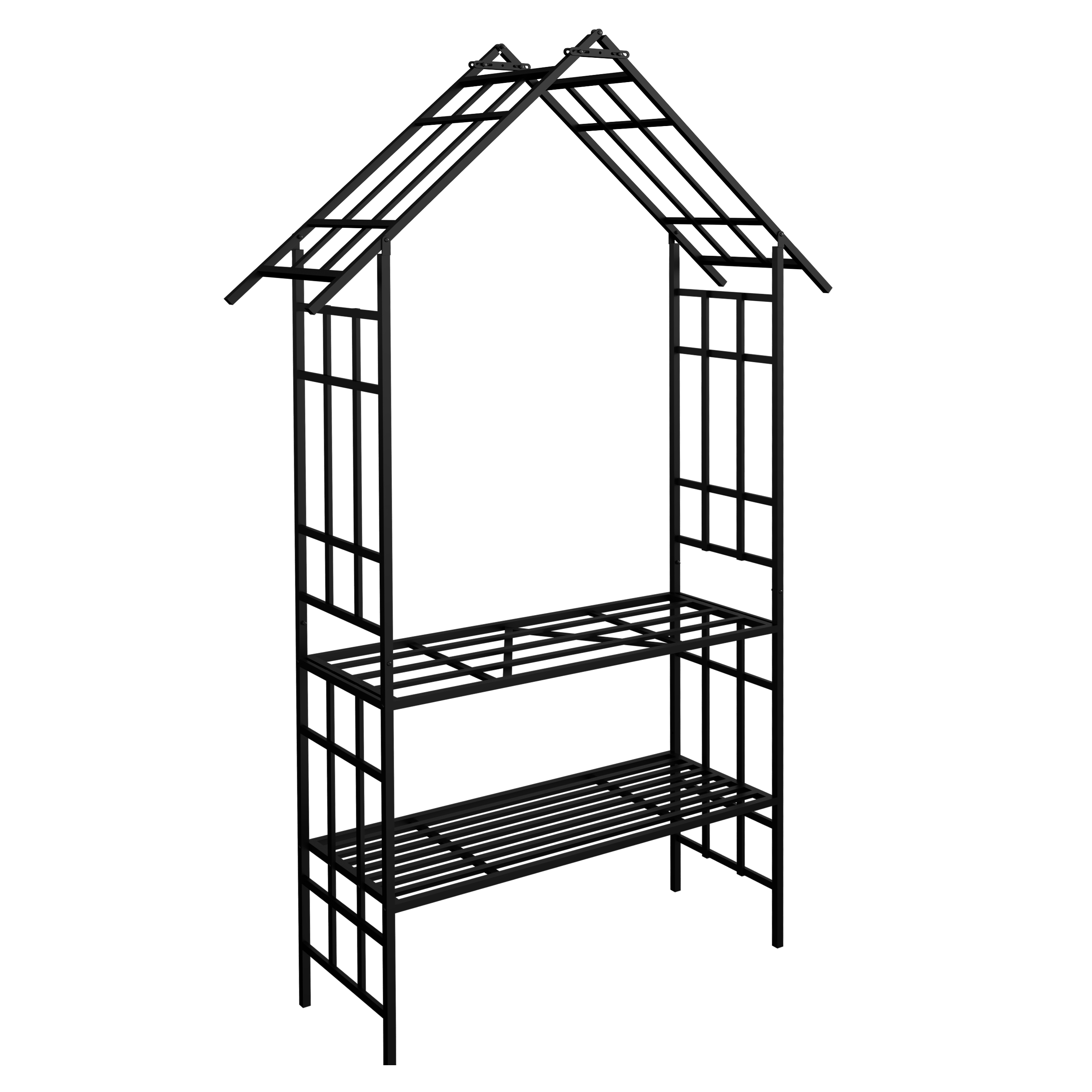 Metal Garden Arch with Bench Turned into Flower Stand W58.07*H97.24 Climbing Plants Support Rose Arch Outdoor Black