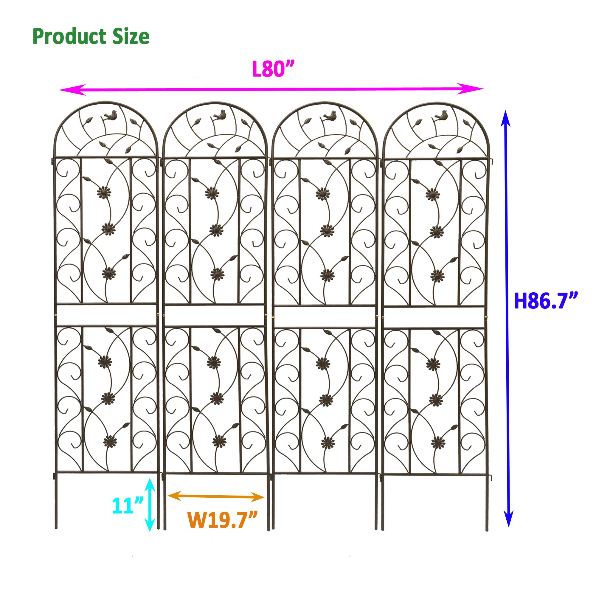 4 Pack Metal Garden Trellis 86.7" x 19.7" Rustproof Trellis for Climbing Plants Outdoor Flower Support Brown