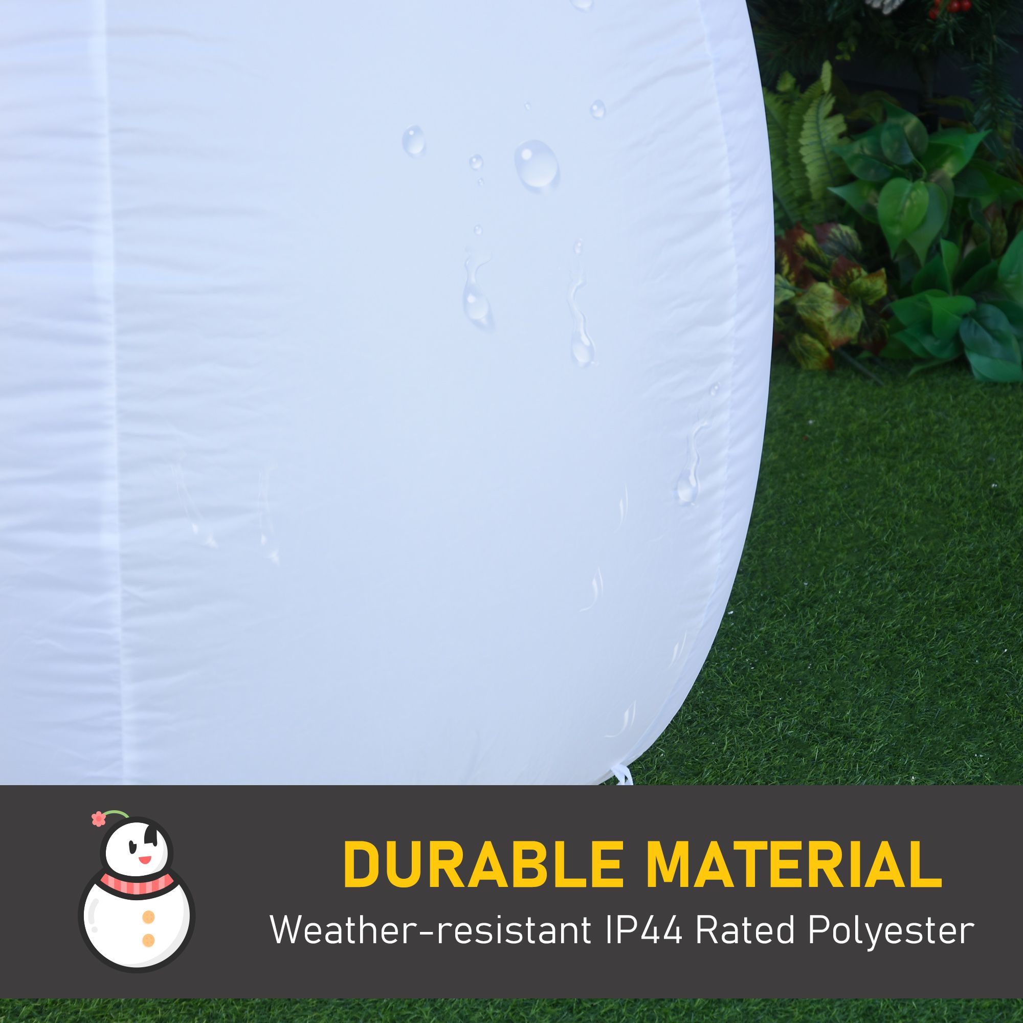 • Mild Rain Or Snow? No Problem: For those more temperamental Christmas, you're still going to want to display your holiday spirit. The outdoor Christmas decoration is made of IP44 rated polyester cloth that is waterproof to withstand outdoor weather.