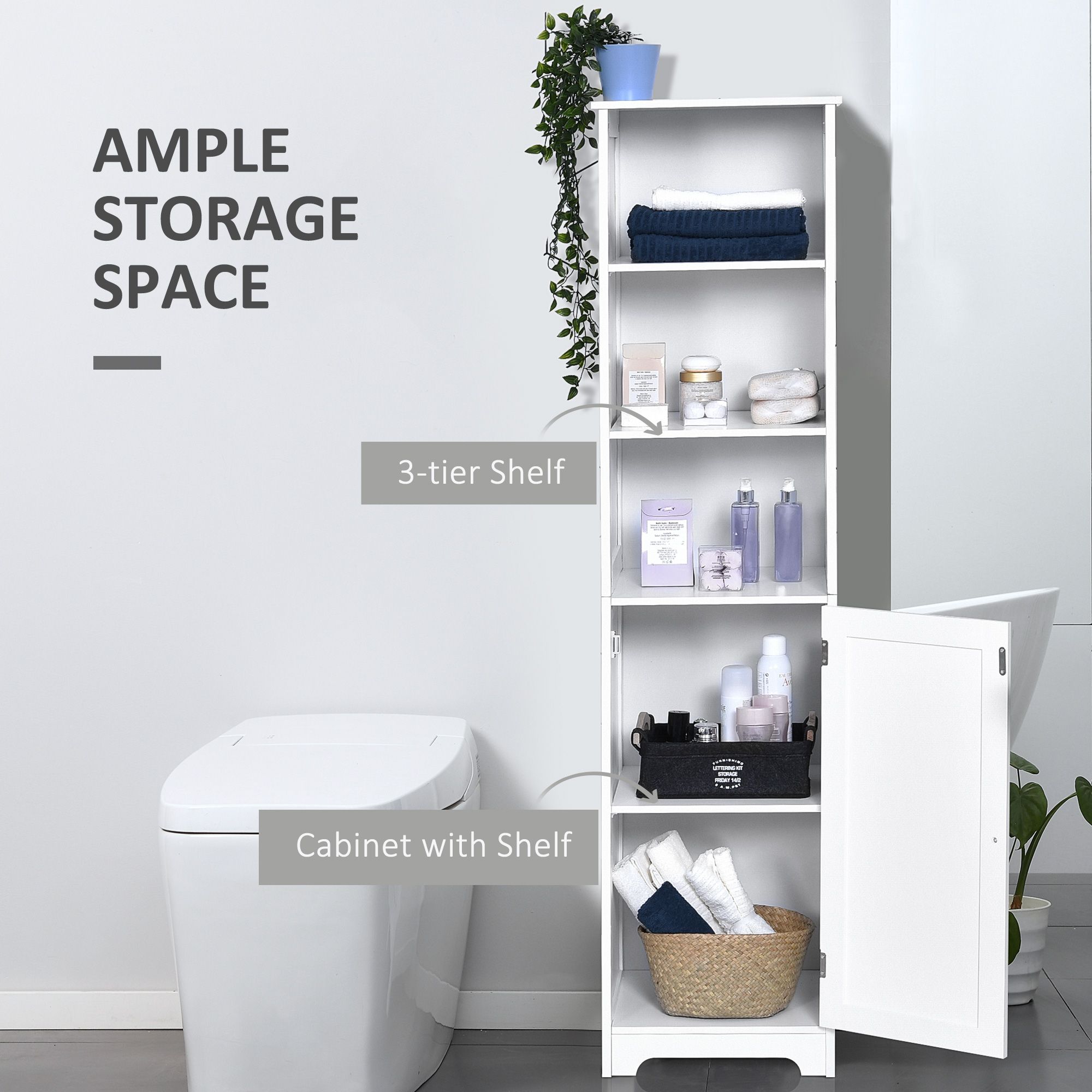 Tall Bathroom Storage Cabinet, Freestanding Tower Cabinet with Adjustable Shelf, 3 Open Shelves, White