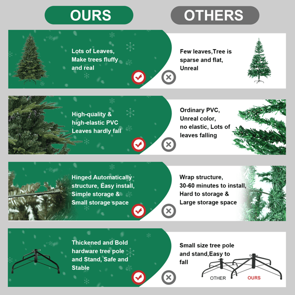 Hinged Automatically structure, Easy assembly of trees, Simple storage & Small storage space