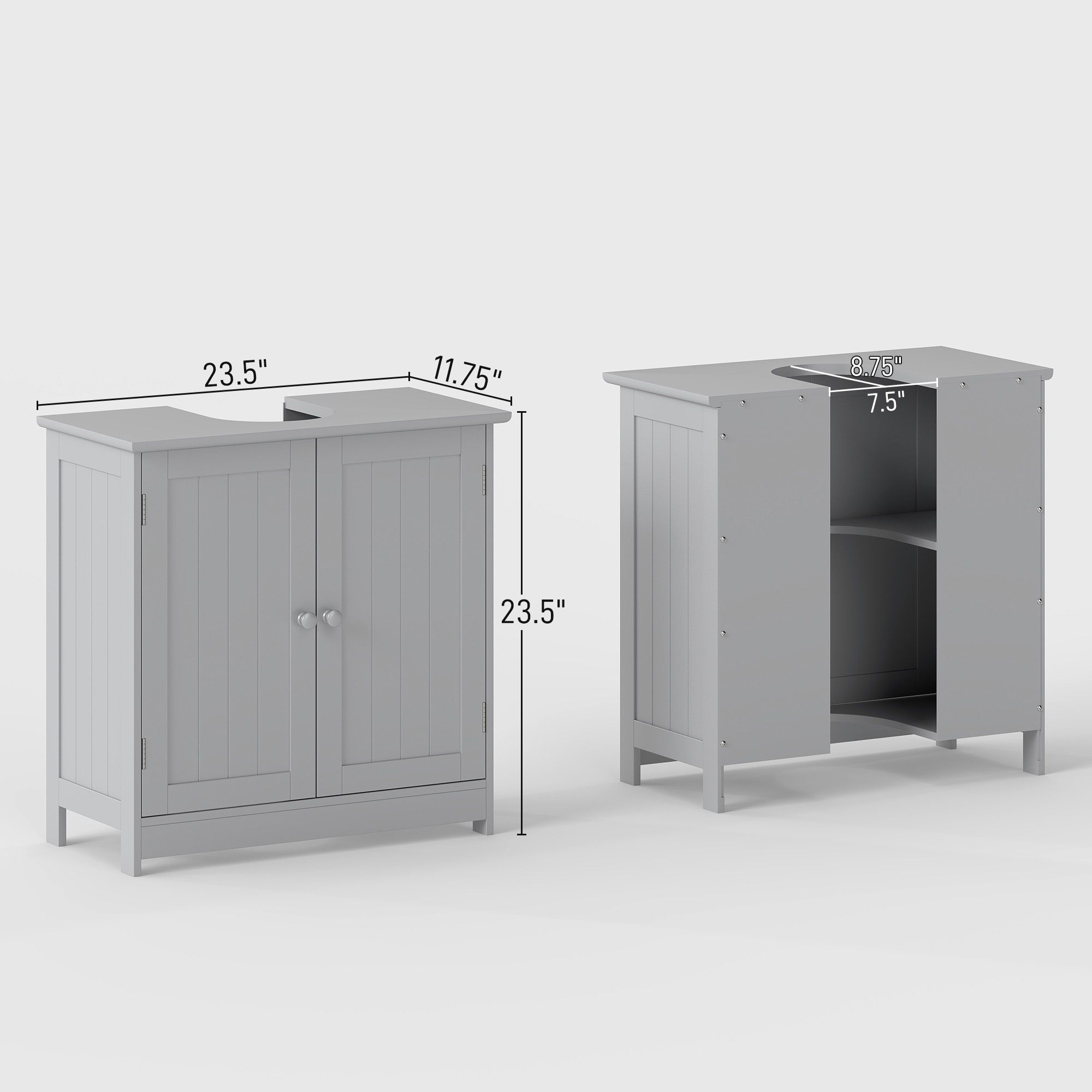 Home > HOMCOM Bathroom Vanity Cabinet, Under Sink Bathroom Cabinet with 2 Doors and Adjustable Shelf, Light Gray
