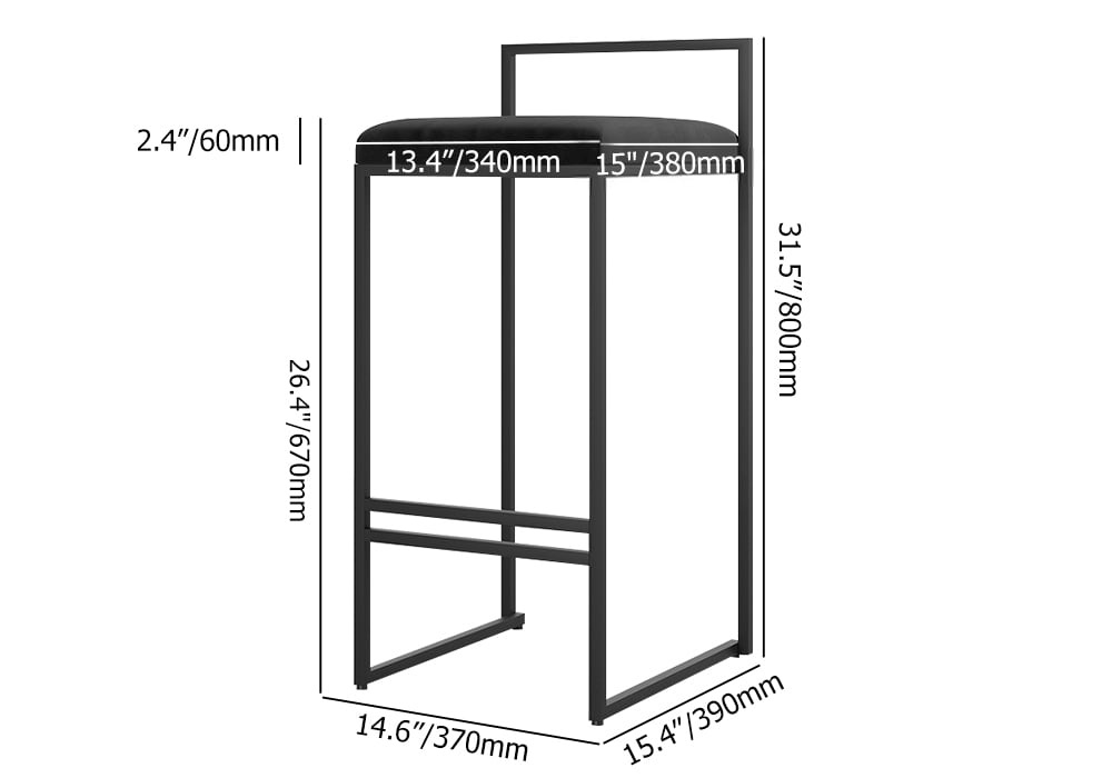 1.Set of 2 modern bar stools with 660mm height for versatile use.