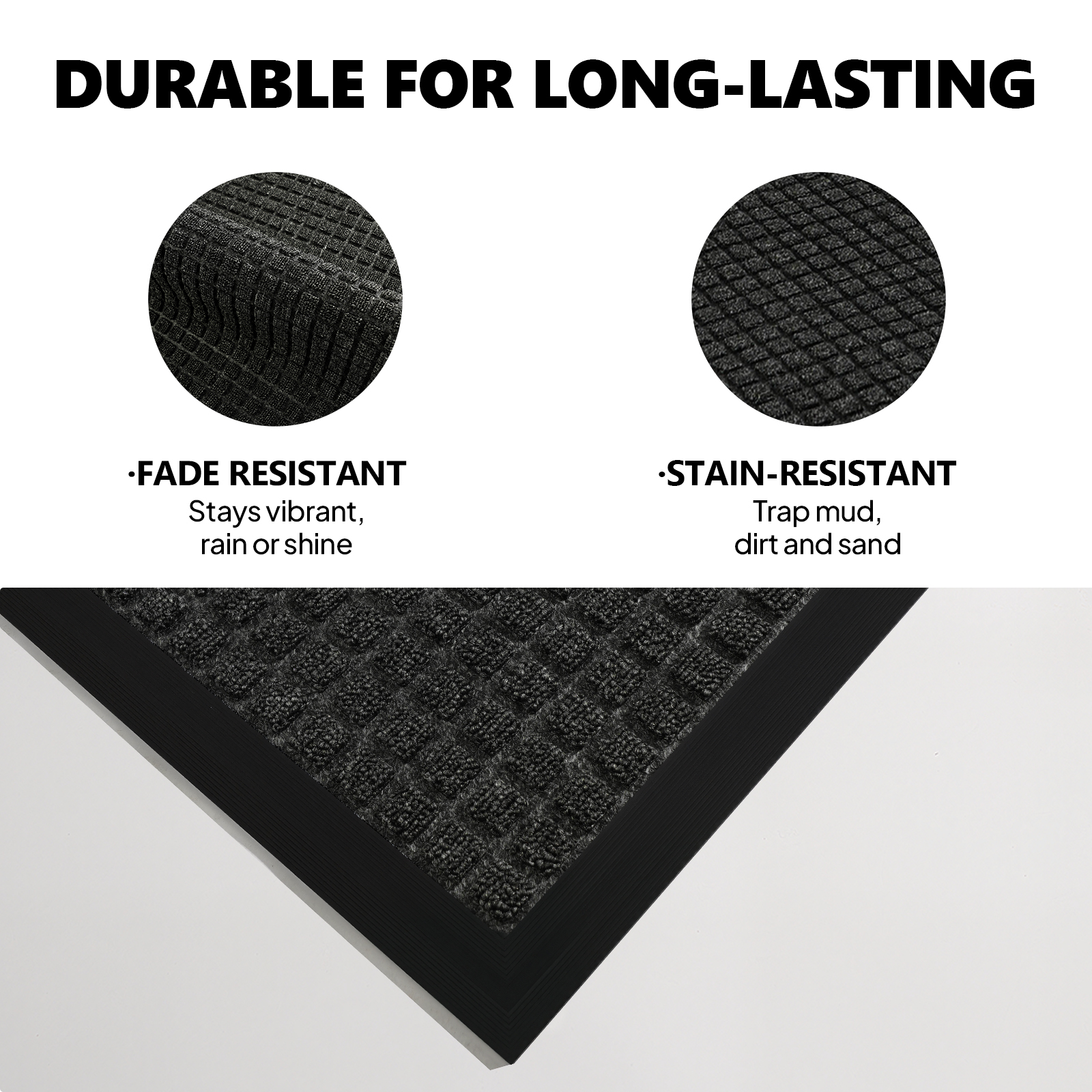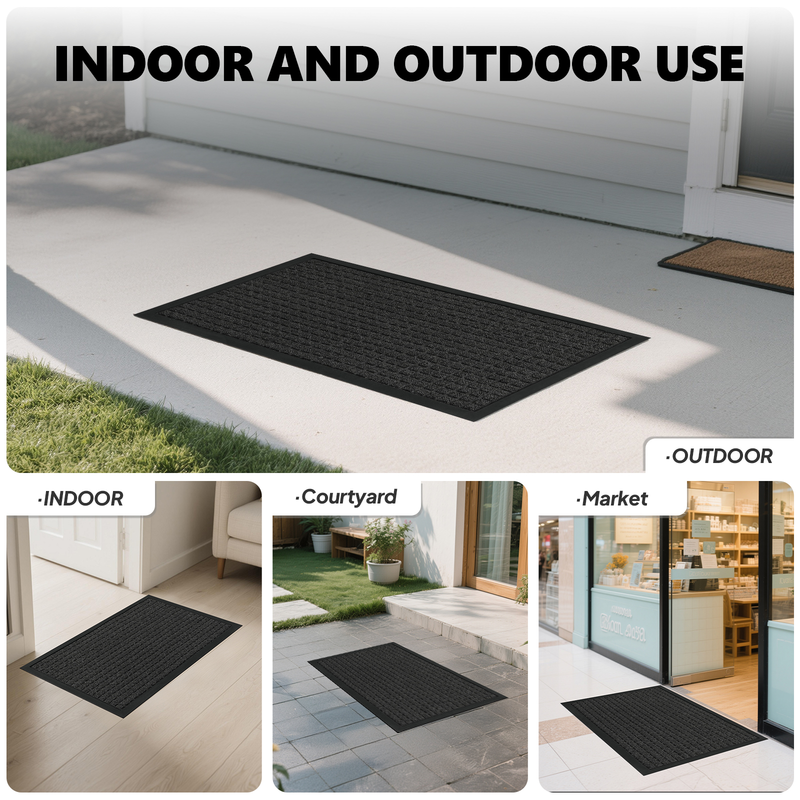• Waterproof & Easy Clean: The rubber base resists water penetration, and the entire mat can be quickly wiped or rinsed clean.