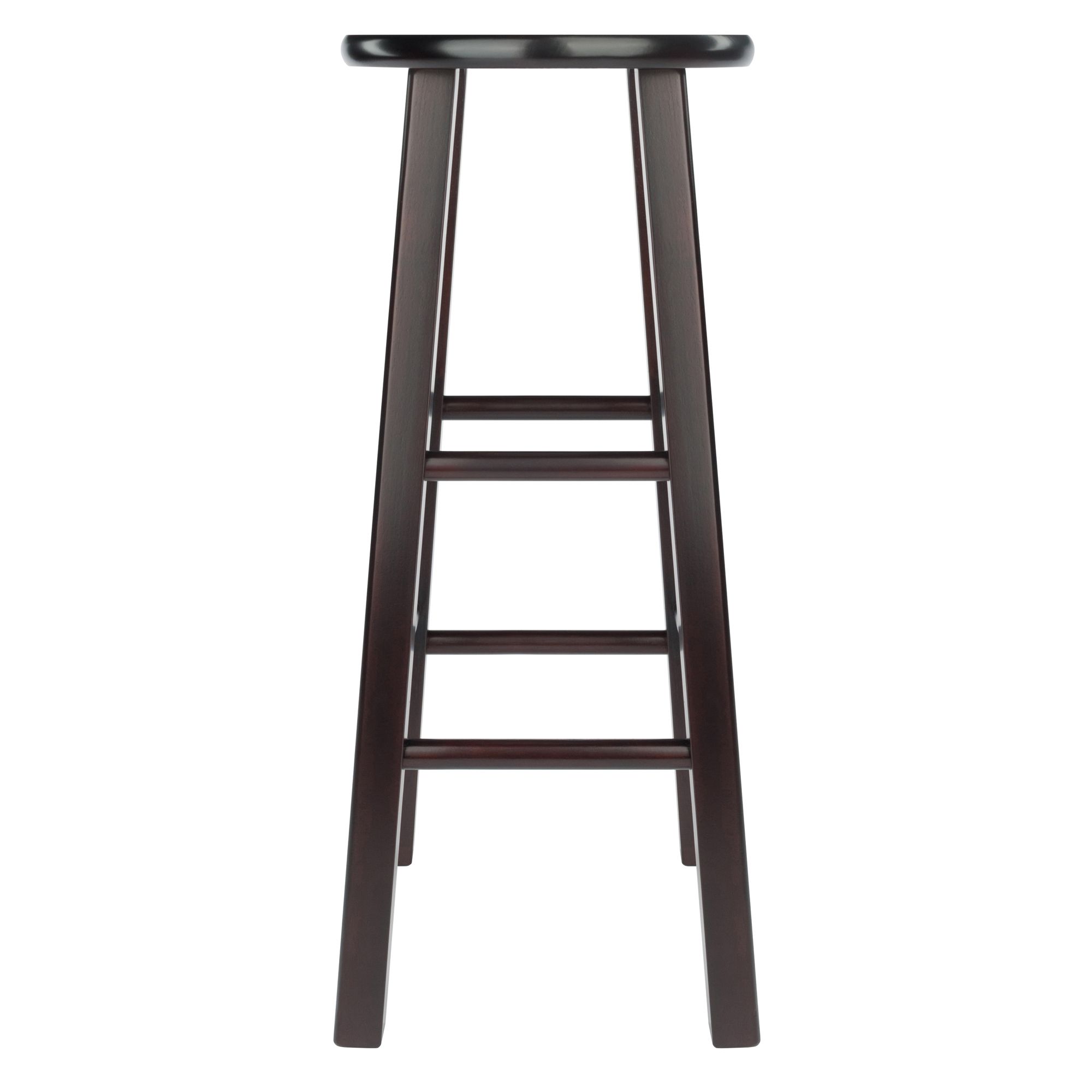 Spruce up your kitchen; breakfast nook; or den with this Winsome Wood Element Bar Stool Set. Finished in a polished espresso finish; these stools feature a simplicity of design blending seamlessly with any decor from modern to traditional. Crafted from study solid wood these bar stools are designed to help you coordinate with a wide variety of furnishings. The square legs and round seat have a sturdy built offering a supportive foundation and hold a static weight of 220lbs. Featuring 8 crossbars; high and low on all four sides; for stability and strength while also serving as convenient footrests; making this stool not only functional but also comfortable. Ideal for extra seating; accommodating guests at gatherings and ideal for everyday use. These 13.58'W x 13.58'D can easily be tucked away when not in use. Like most Winsome stools; the Element collection is available in multiple finishes and like most Winsome stools are available in both bar and counter height. Conveniently packed and shipped in one box; that includes the hardware necessary for assembling. Replacement part request can be submitted directly to the manufacturer within 60 days from date of purchase.