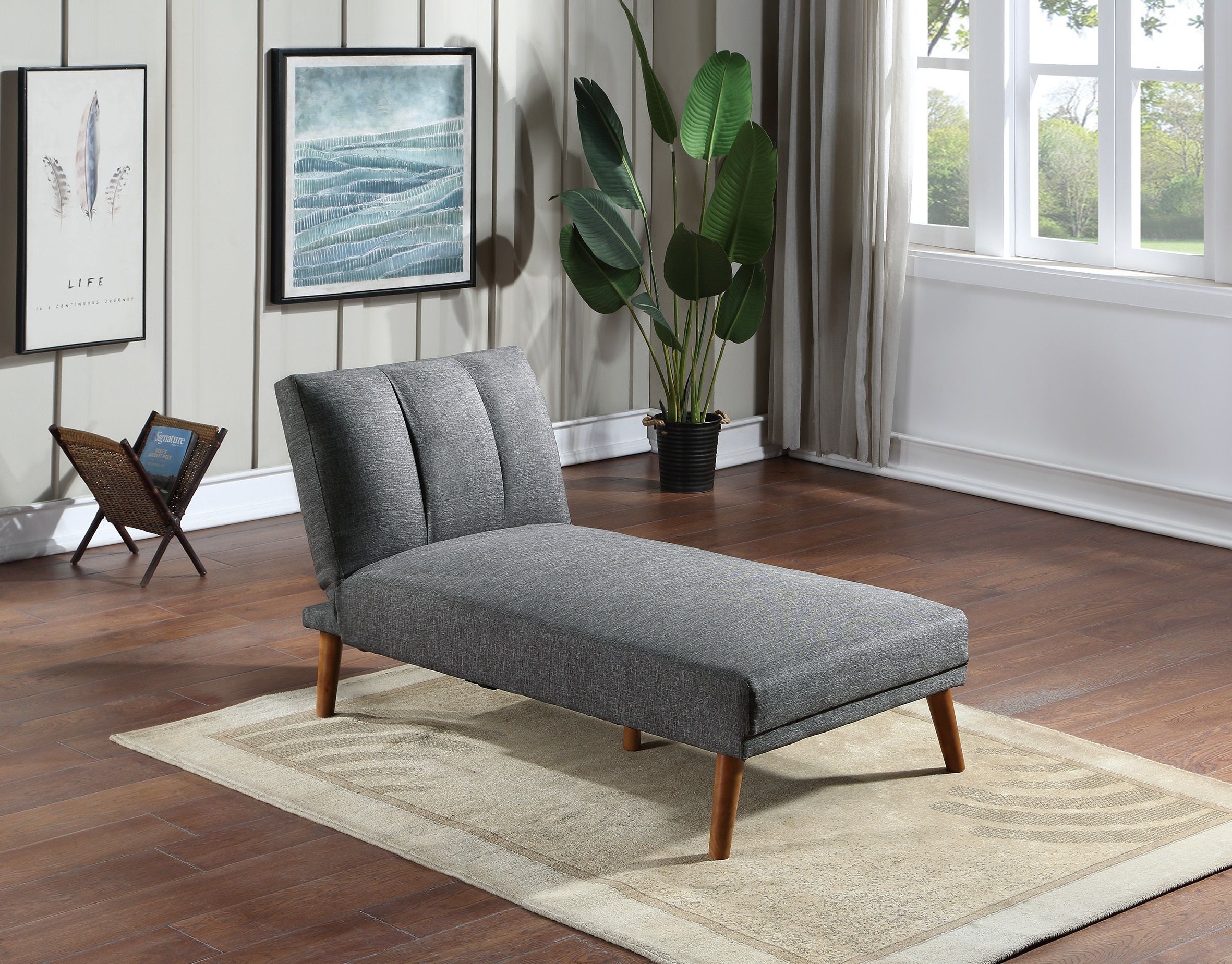Product Description:-This sturdy yet gorgeously crafted adjustable chaise provides a statement to your cozy home. The retro look can fit into any decorations and plants. Made with a sofa and a chaise, both furniture can be adjust to function as sitting or sleeping position based on the functionality. Having extra guests becomes convenient and easy, since this sofa can instantly host guests overnight without worrying about no space for your friends.Product Dimensions:-Adjustable Chaise (UP) :- 62" x 30" x 31"HAdjustable Chaise (FLAT) :- 71" x 30 x 17"HListing Includes :- 1pc Adjustable Chaise only.SOFA - NOT INCLUDED.Simple assembly require.Shipment Service:Shipping Service include curb side delivery with free lift gate service,NOTE : No inside home delivery.Product Features:-Contemporary StyleBlue Grey ColorPolyfiber (linen Like Fabric)PlywoodPatterned CushionSolid wood LegsConvertible Bed SofaExtra Cushion, Ultimate Comfort SofaFoam, FabricAvailable in 2 other colors