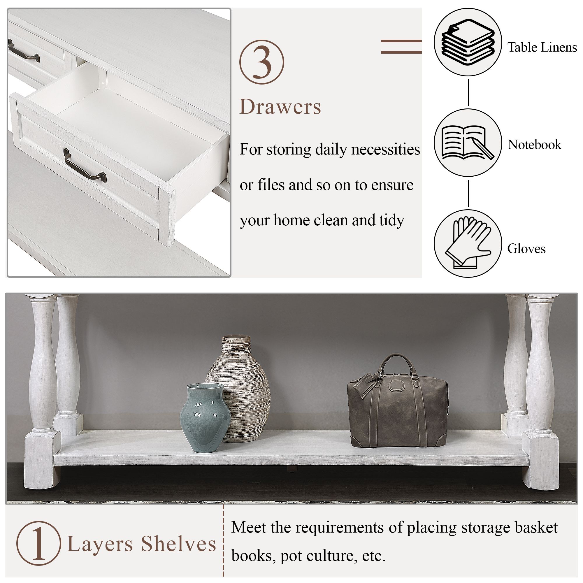 [Multi Functional Storage Space] The sofa table features with total 3 functional drawers and a fixed lower shelf and long enough tabletop which provide enough storage space. This is a good place to put your daily necessities.