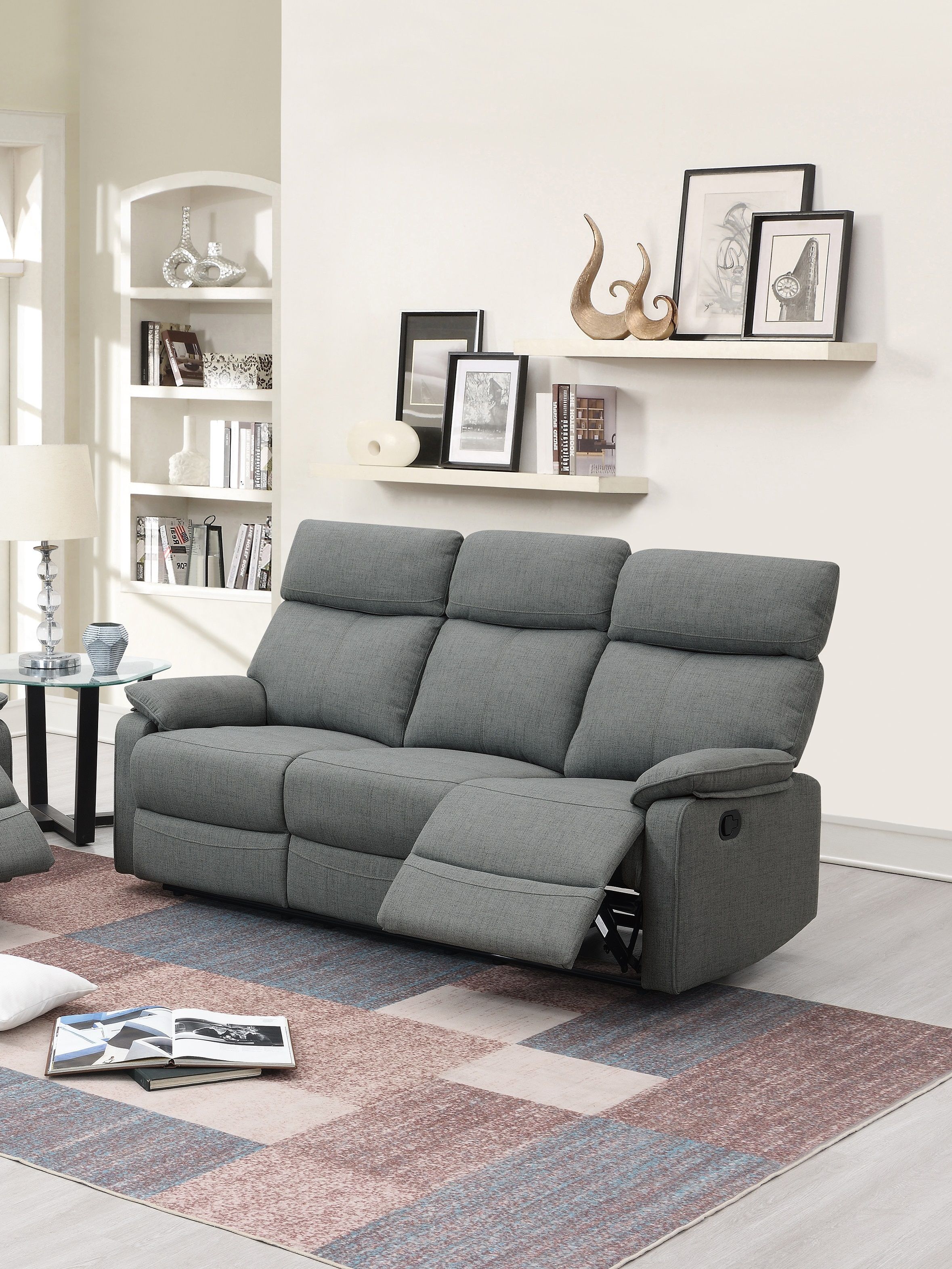 Relax with the family and enjoy a movie night with this 3-seater manual recliner Sofa Set. Designed to provide maximum comfort and support, featuring patted headrests and armrests. Available in Dark Blue and Gray (Burlap Fabric)Product Dimensions:-