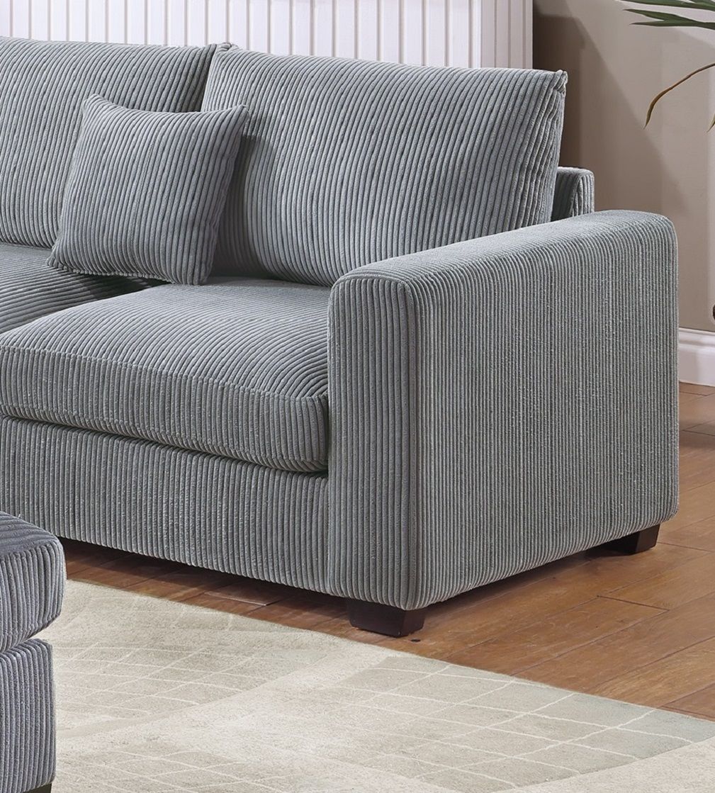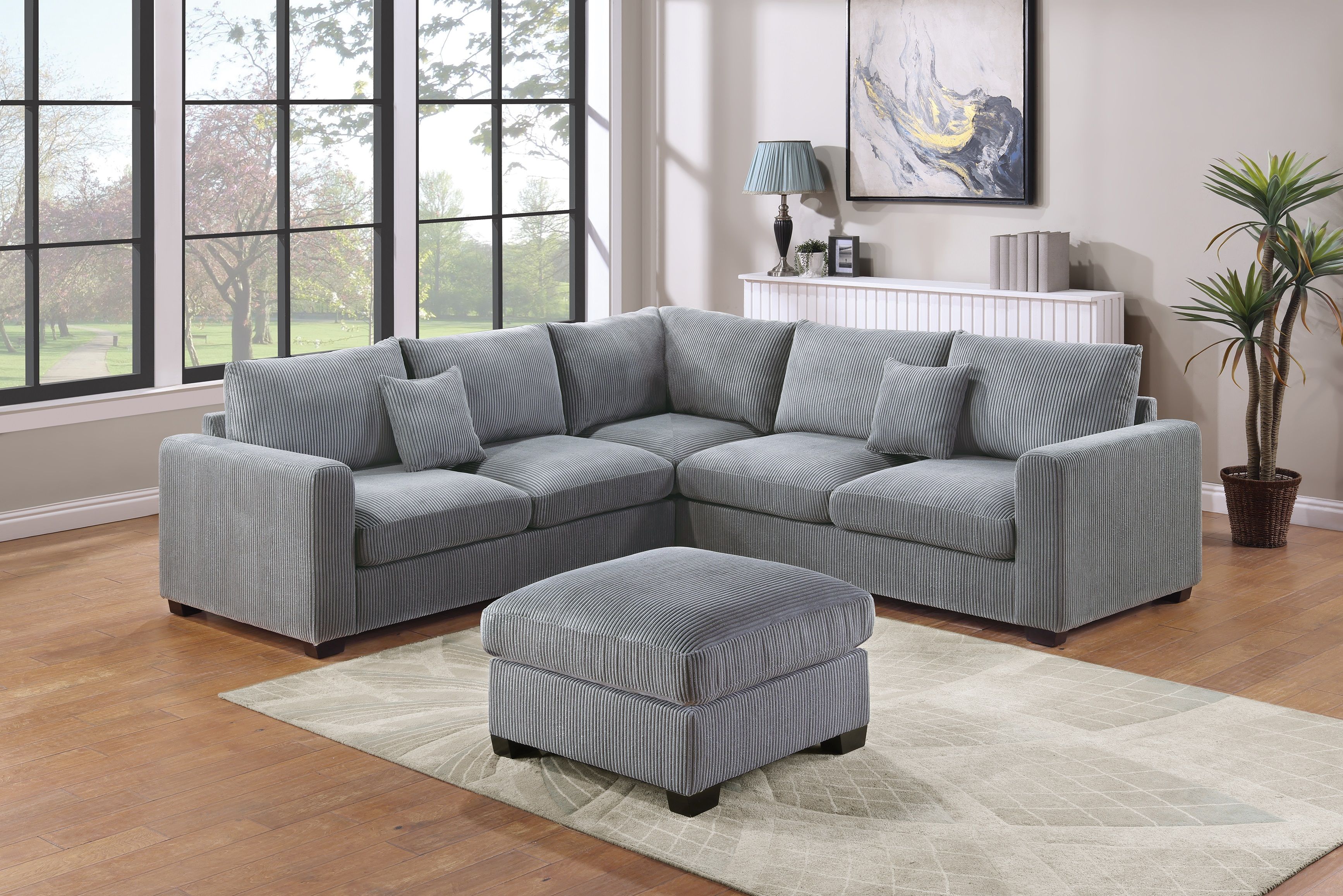 L-Sectional Sofa Corduroy Fog Color LAF And RAF Loveseats Corner Wedge Ottoman 4pcs Sectional Set Couch Living Room Furniture