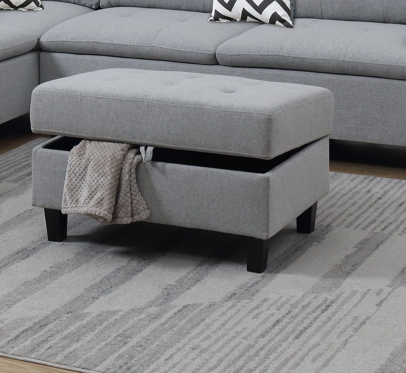 Home > Living Room Furniture Grey Cushion Sectional w Ottoman Linen Like Fabric Sofa Chaise