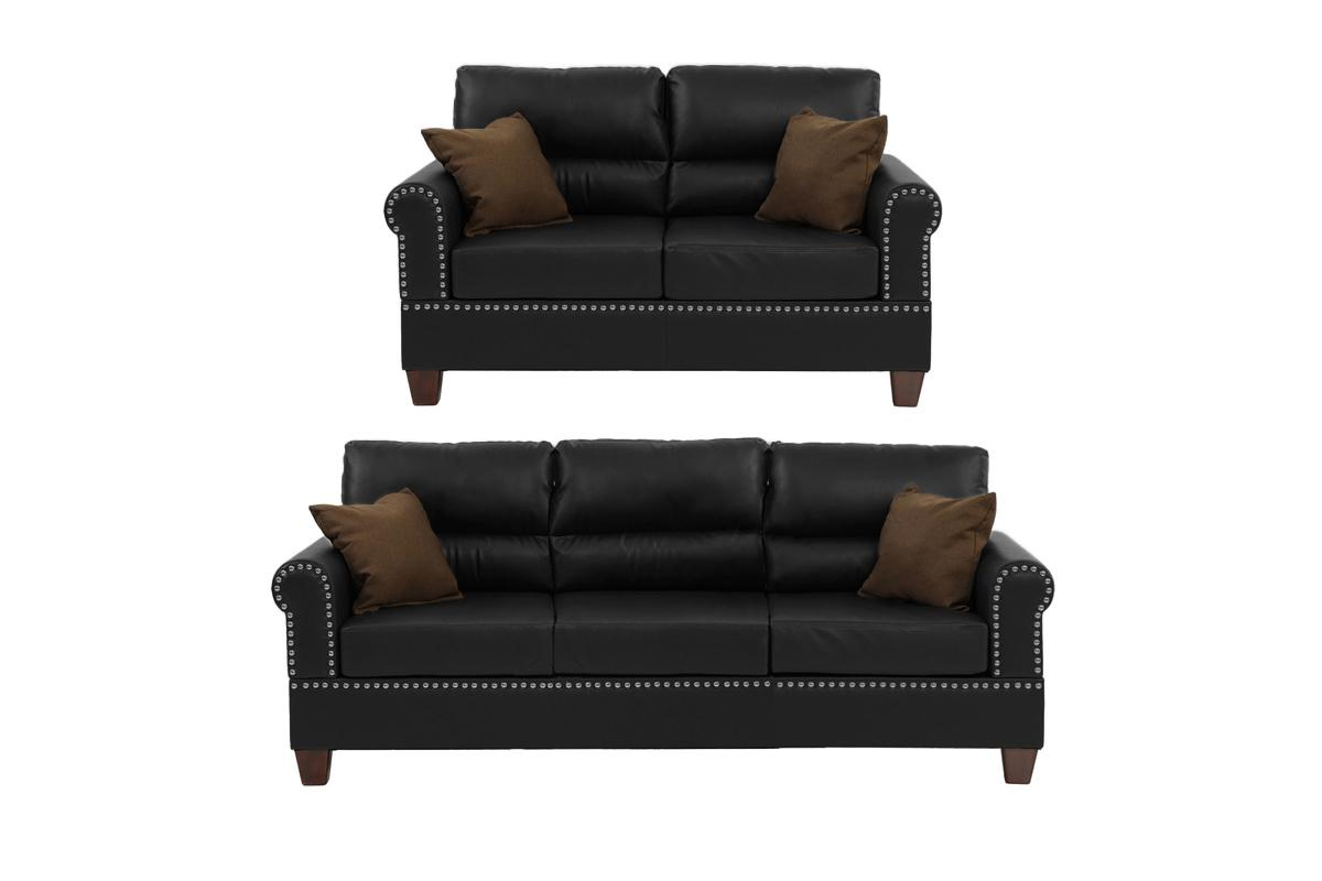 Black Bonded Leather 2pc Sofa Set Sofa And Loveseat Living Room Furniture
