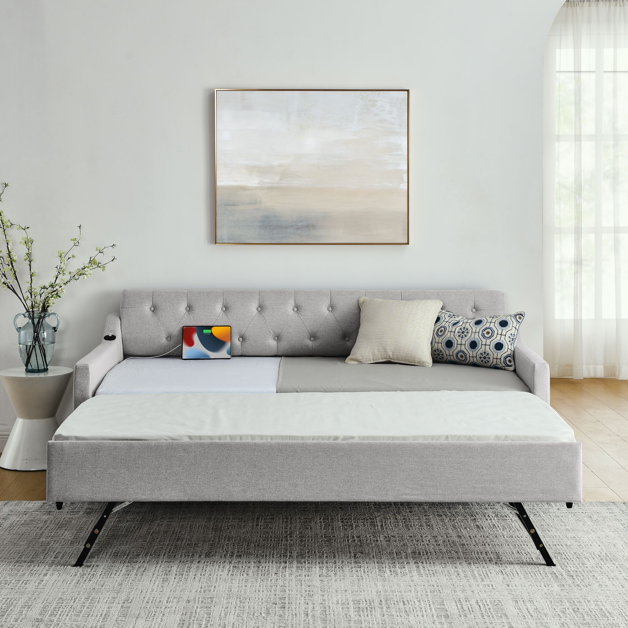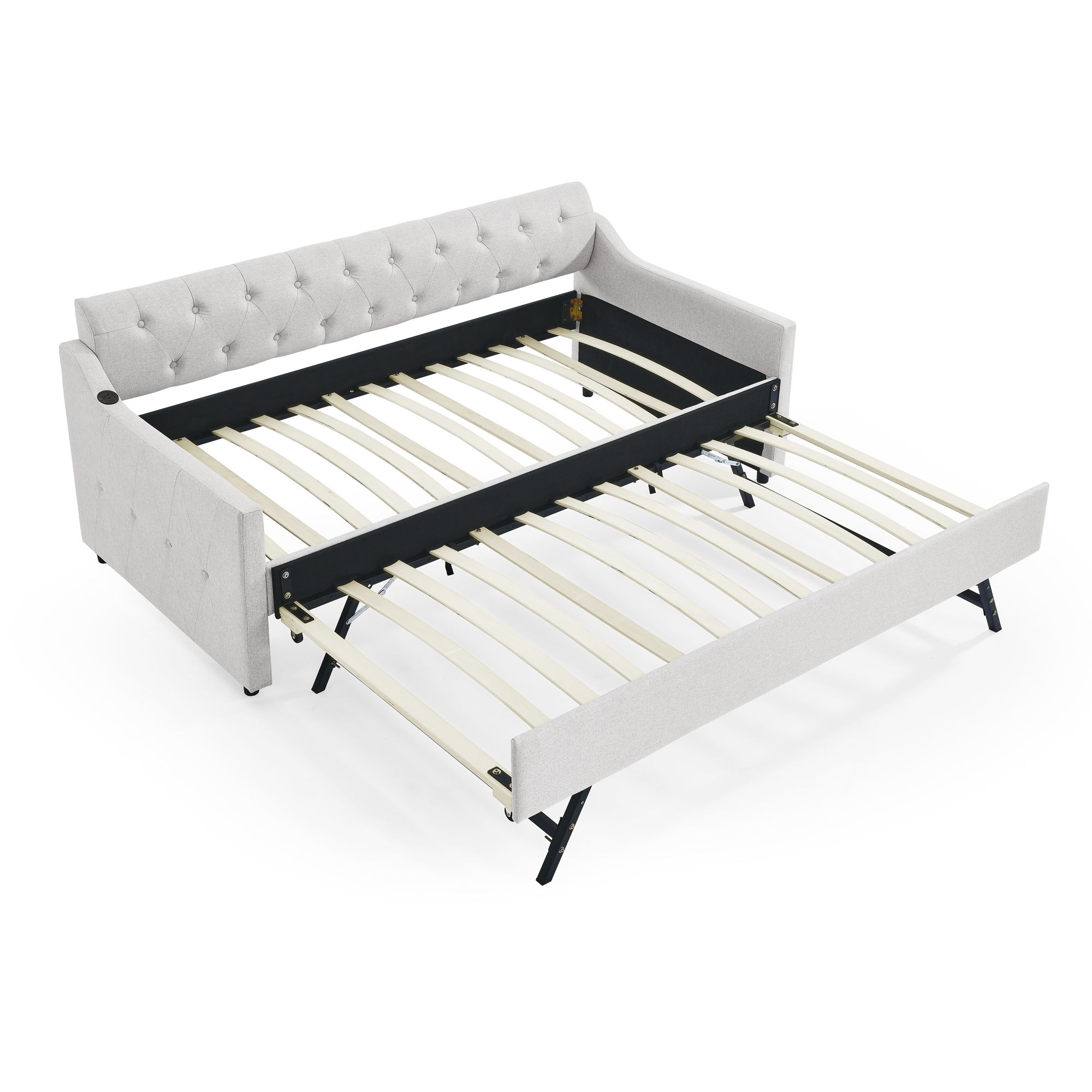 Twin Size Upholstery DayBed with Twin Size Erectable Trundle and USB Charging Design, Linen Beige Twin Size Upholstery DayBed with Twin Size Erectable Trundle and USB Charging Design, Linen Beige Twin Size Upholstery DayBed with Twin Size Erectable Trundle and USB Charging Design, Linen Beige Twin Size Upholstery DayBed with Twin Size Erectable Trundle and USB Charging Design, Linen Beige Twin Size Upholstery DayBed with Twin Size Erectable Trundle and USB Charging Design, Linen Beige Twin Size Upholstery DayBed with Twin Size Erectable Trundle and USB Charging Design, Linen Beige
