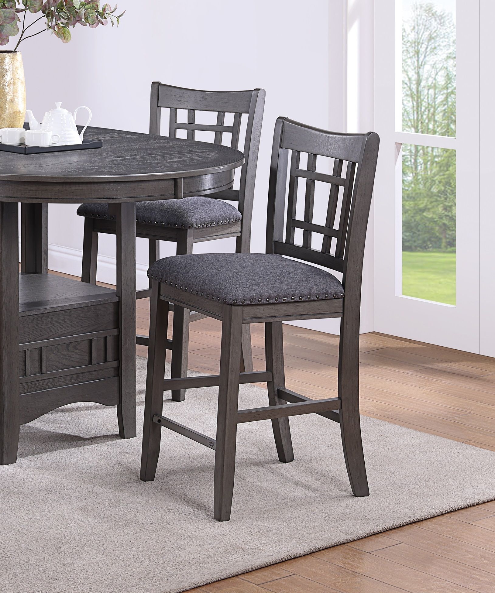 Set of 2pc High Chairs Dining Room Furniture Gray Solid wood Counter Height Chairs Upholstered Cushioned Open Square Design Back