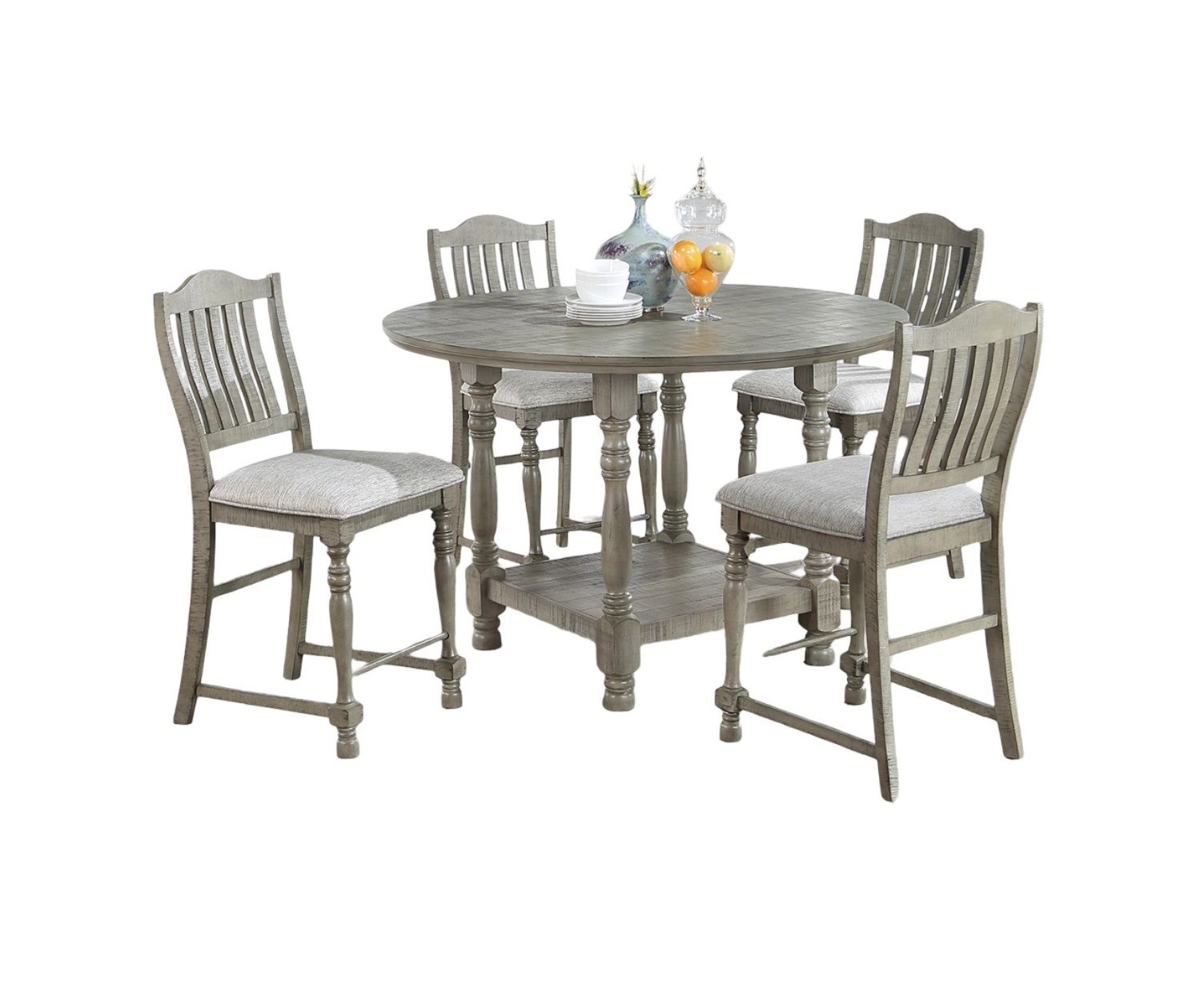 Listing Include: 5pc Dining Set (Round Counter Height Dining Table And 4x High Dining Chairs) Only.