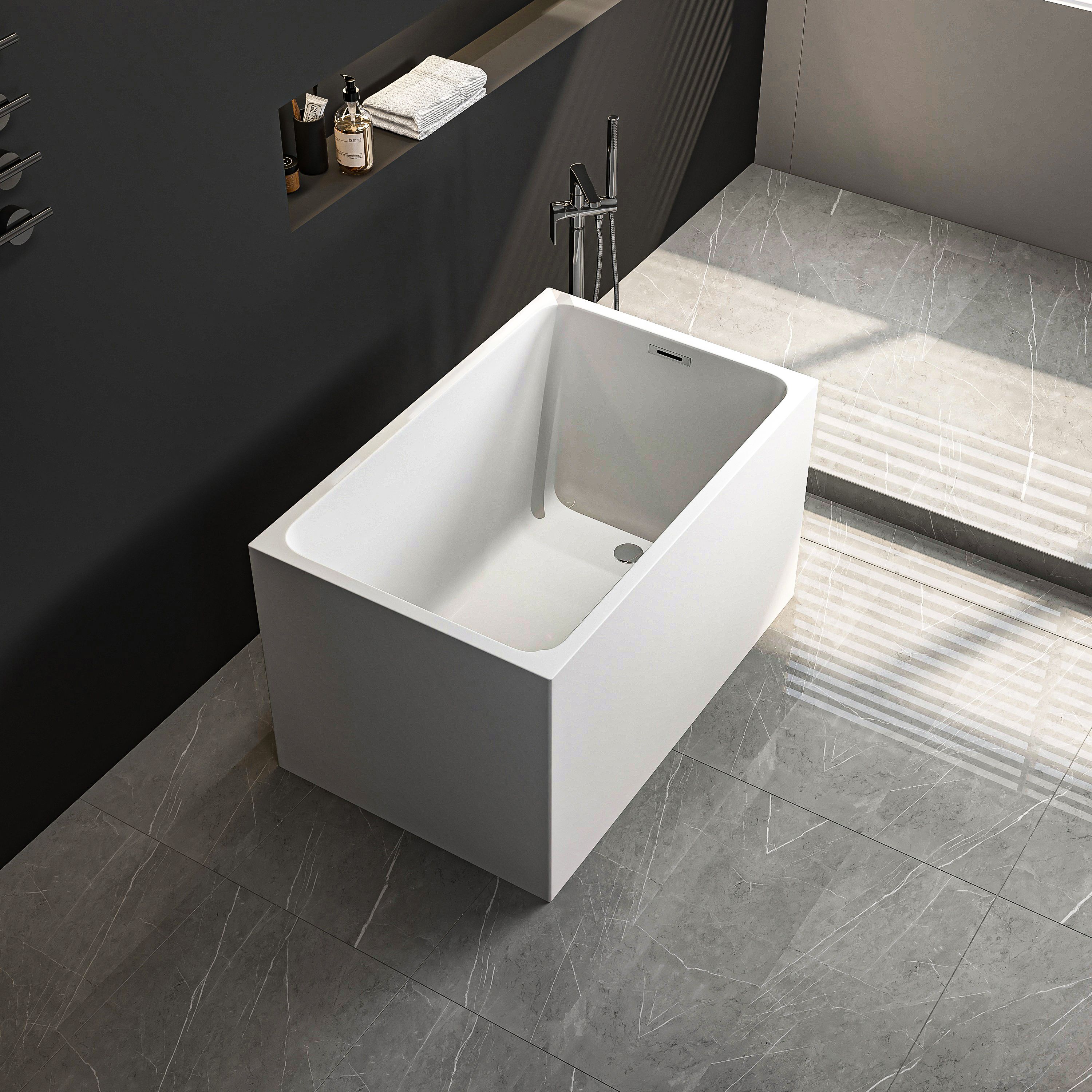 Elegant and compact, this small-sized rectangular freestanding bathtub seamlessly blends modern design with functionality, making it an ideal choice for cozy bathrooms with limited space.