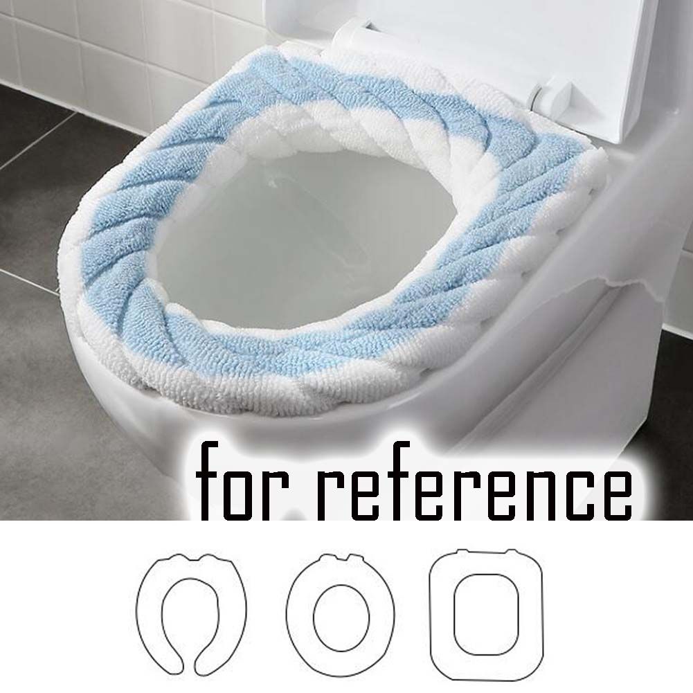 2 Pcs Blue White Knit Toilet Seat Cover Pads Winter Stretchable Toilet Seat Cushion Mat Toilet Seat Warmer 2 Pcs Blue White Knit Toilet Seat Cover Pads Winter Stretchable Toilet Seat Cushion Mat Toilet Seat Warmer