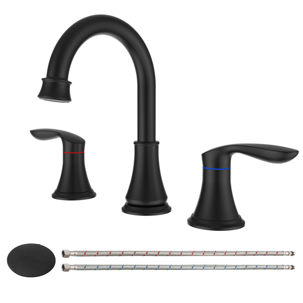[ PREMIUM MATERIAL ]- Exquisite widespread bathroom faucet in matt black finish; shiny surface; anti-scratch; resist corrosion; no water spot and finger print; solid brass connector ensures long time using. Exceed industry longevity standards; ensuring durable performance for life.