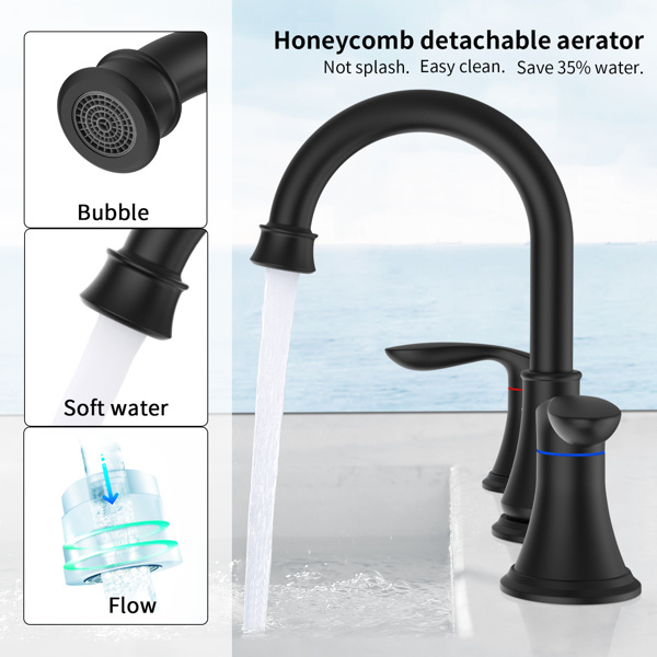 [ TWO-HANDLE LEVERS ]- 2 Handle metal lever design for precise control in both volume and water temperature. The high-quality ceramic & copper cartridge has passed 500; 000 cycles of water tightness test to ensure that the bathroom faucet 3 hole matt black is stable and will not leak water. Upgraded overflow pop up drain with built-In stopper.