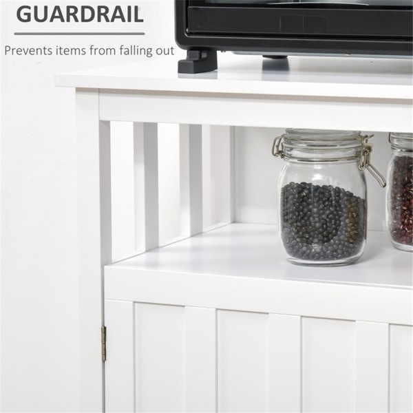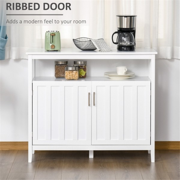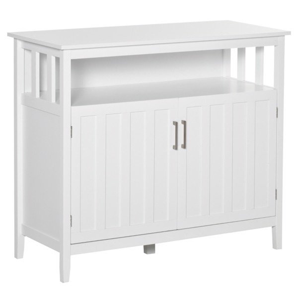 • - Features an open shelf and two cabinets, giving you plenty of room for keeping plates, plastic containers, and other daily accessories