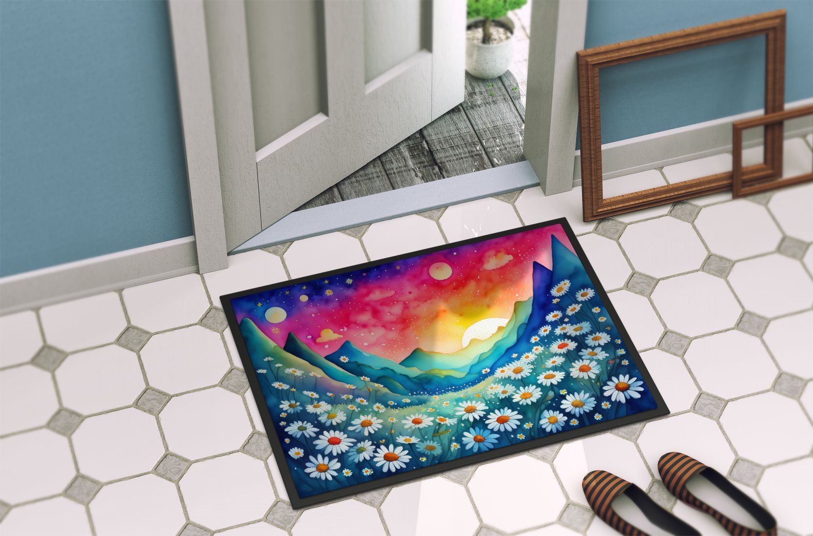 Home > NEW Daisies in Color Doormat Front Door Mat Indoor Outdoor Rugs for Entryway, Non Slip Washable Low Pile, 18H X 27W