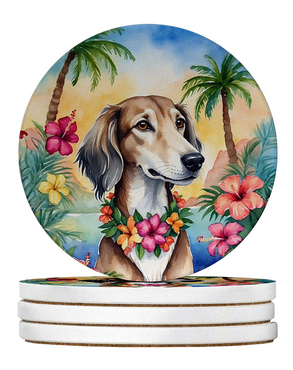 Saluki Luau Large Sandstone Coasters Pack of 4 Absorbent Round Coasters Decor Gifts for Men or Women, 4 in, Multicolor