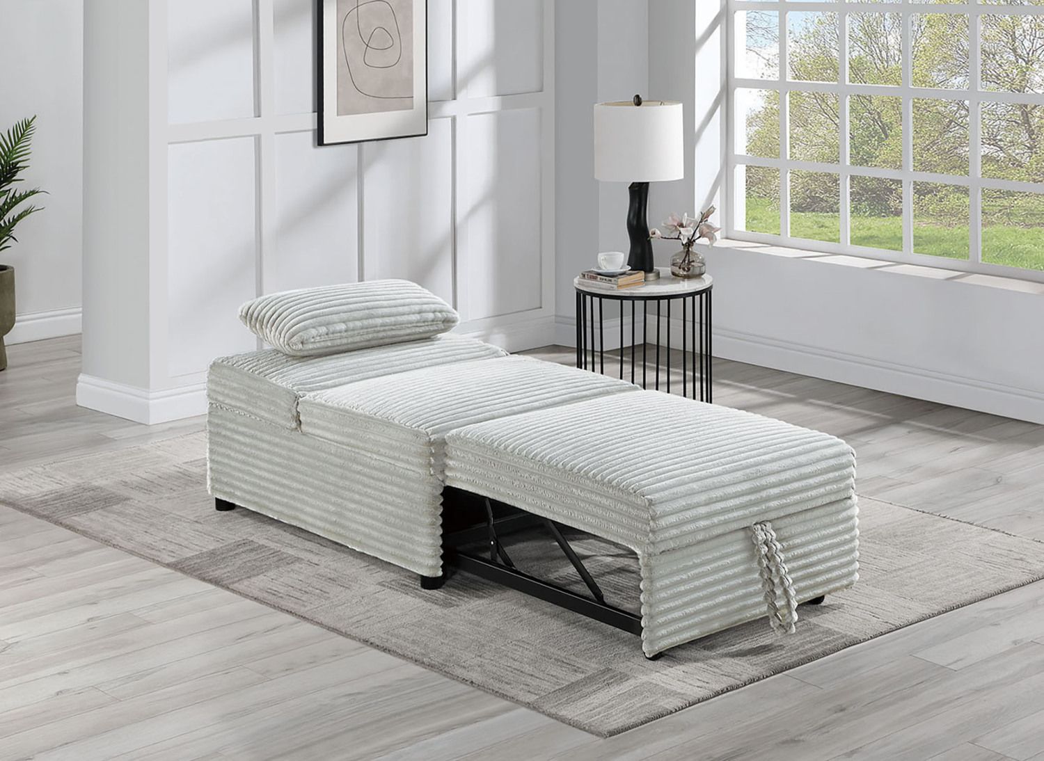 This Convertible Sofa is your perfect companion for any space. Effortlessly transform it from a cozy chair to a relaxing bed with a simple pull-out mechanism. Crafted from soft corduroy material, it ensures a luxurious feel with every touch. Designed for convenience, its easy handle makes switching between modes a breeze. Complete with a matching throw pillow for added comfort. Ideal for small apartments, guest rooms, or any space where versatility is key, the Cozy Comfort Convertible Sofa ensures you can relax in style, whether you're lounging, reading, or sleeping.
