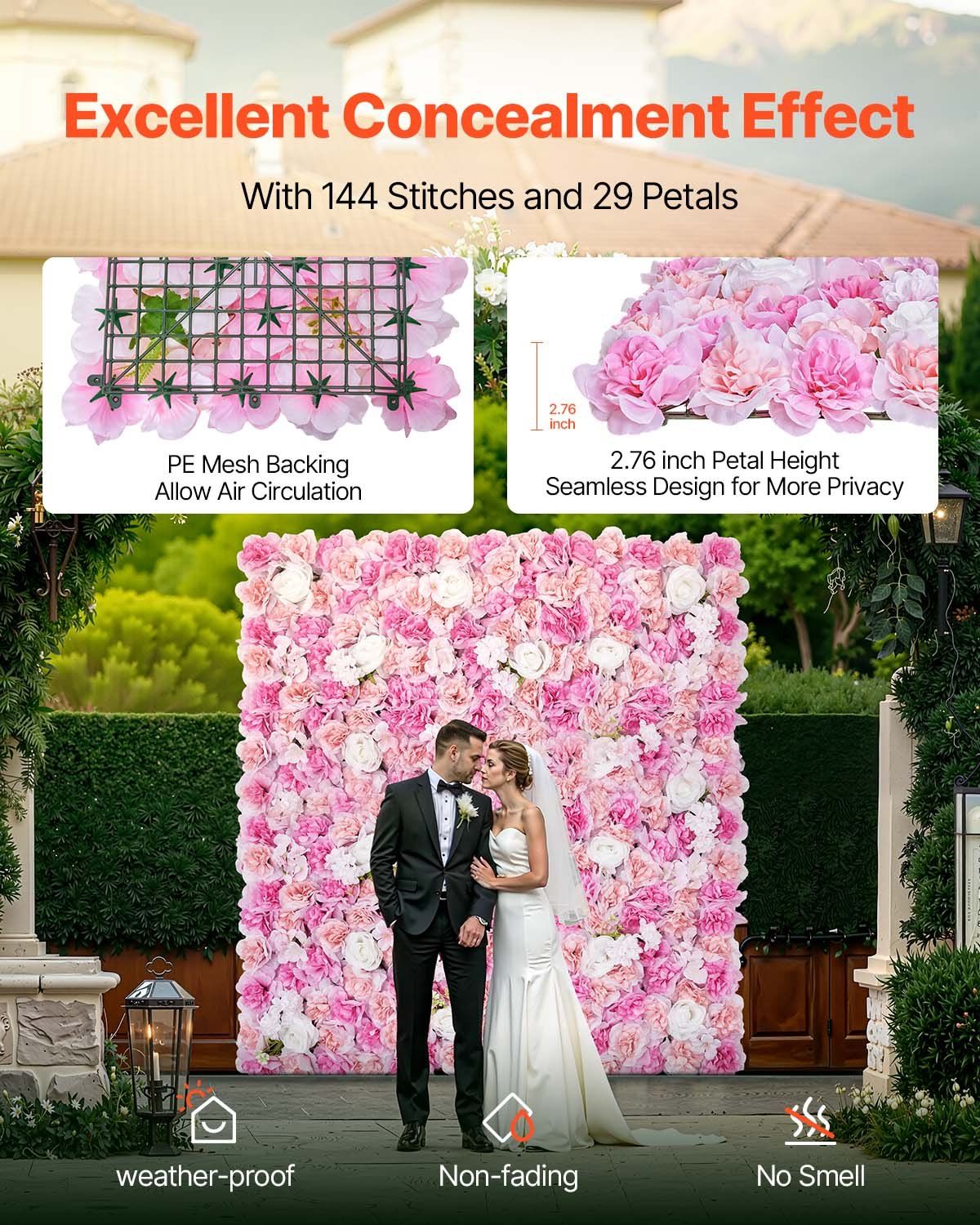 5.18.75 sq. ft. Coverage Area: Each artificial flower wall set includes 12 panels, covering a total area of 18.75 sq. ft. Measure your space in advance to determine the required quantity and ensure the perfect fit for your desired coverage