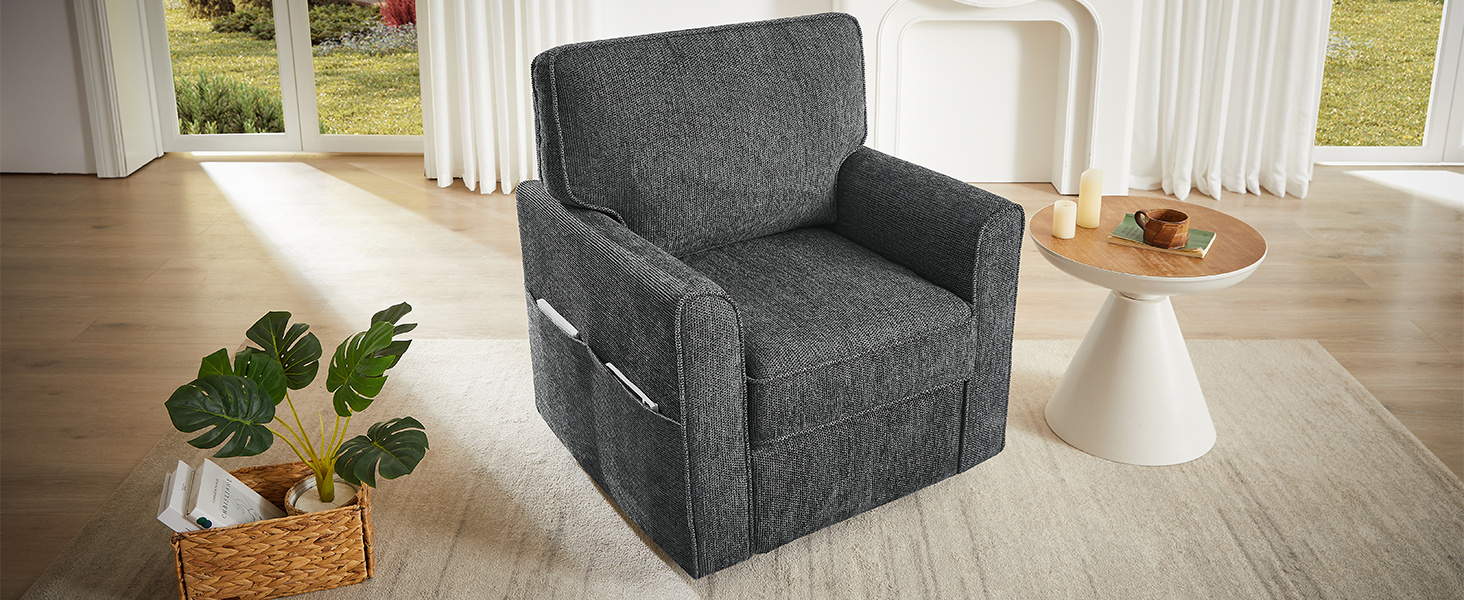 Convenient Side Storage Pocket - The chair features handy side storage pockets on both sides, perfect for storing small items such as magazines, remotes, or personal belongings. This design enhances functionality by offering easy access to essentials without cluttering the surrounding area.